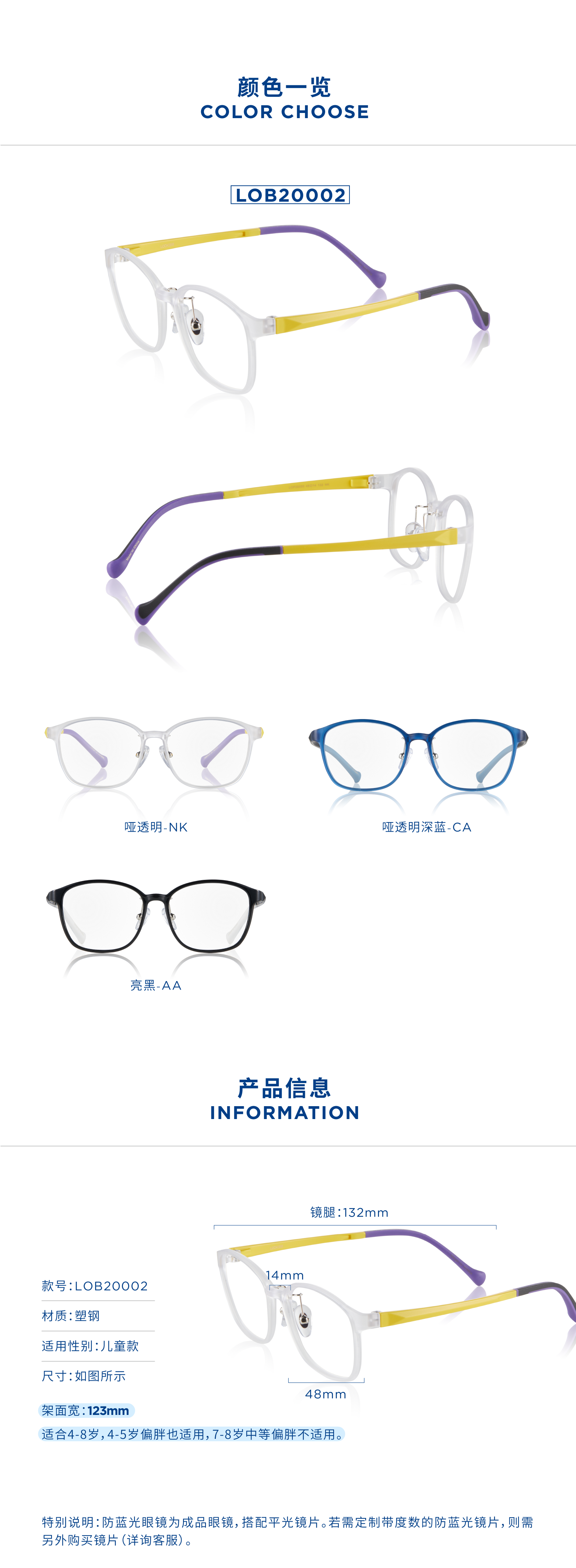 LOOK眼镜 儿童防蓝光眼镜20%阻隔蓝光LOB20002