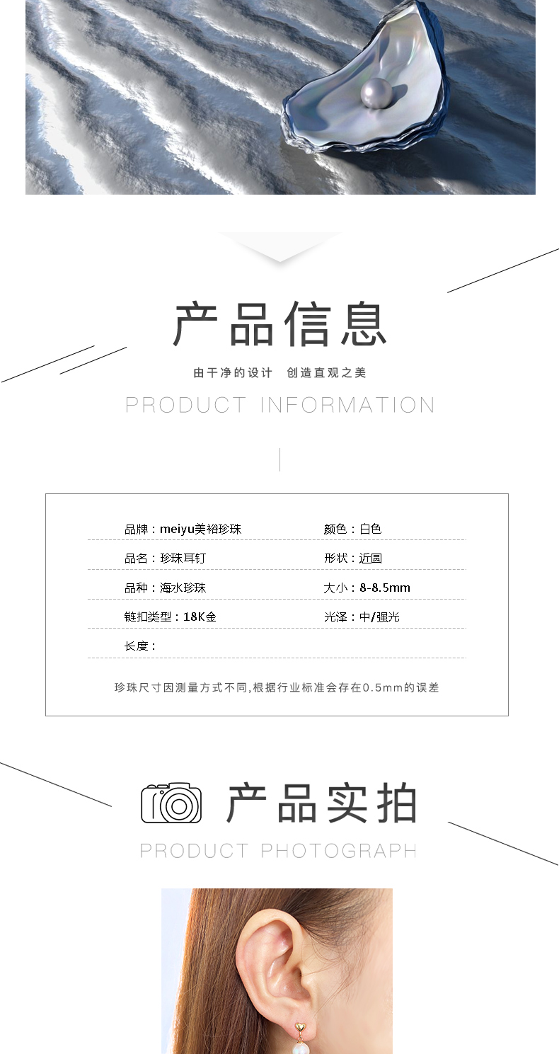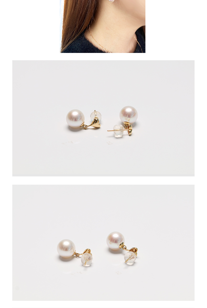 美裕 【心心相印】金18k海水珍珠耳钉 8-8.5mm白104655