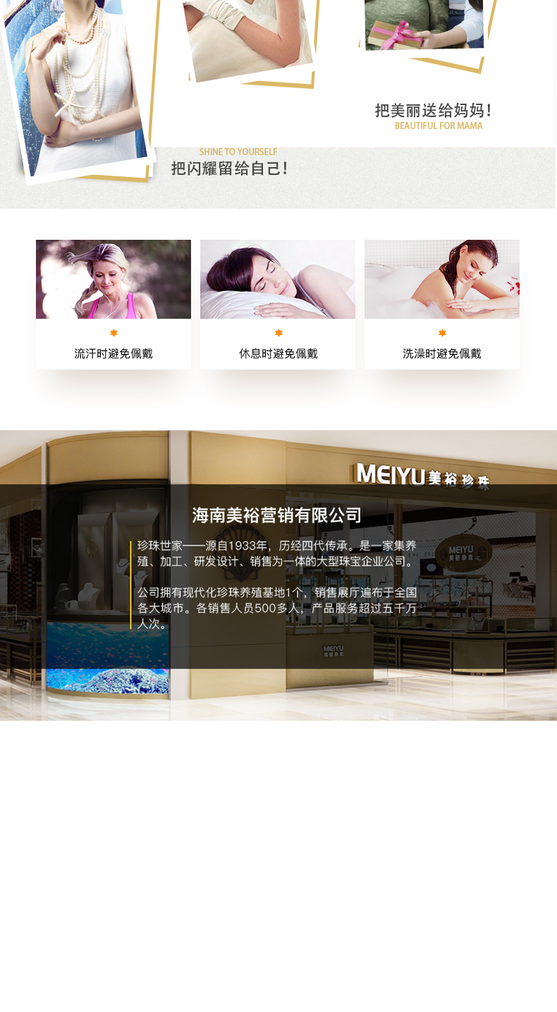 - 珍珠世家,代代相传。美裕珍珠,1933年起源于印尼,成长于海南岛。依托海南资源优势和自身专业优势,以经营南珠、南洋珠为主,专注于珍珠文化的挖掘和传播,把珍珠代表的爱意,永不间断地传承下去。