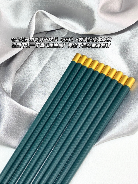 好多姐妹都以为合金筷子里面有金属~ 但实际上,合金筷是由高分子材料(PET)+玻璃纤维做成的! 里面不含一丁点儿重金属!完全不担心金属超标,or用它会造成重金属中毒!