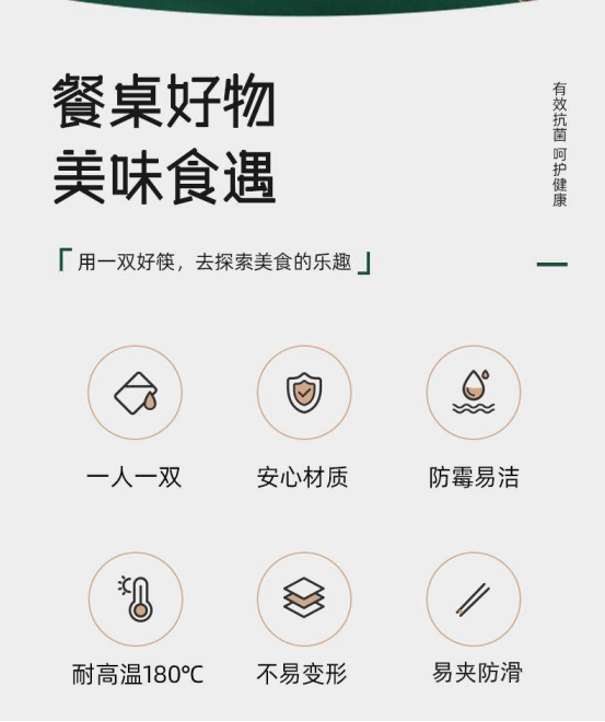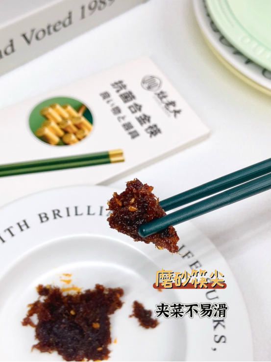 筷子末端还做了个磨砂设计,增强筷子和饭菜的摩擦力。 夹菜不打滑,用着更趁手!当然啦,用航天级材料做的筷子,耐摔耐造,入手还自带抗菌效果的筷子 简直不要太划算 虽然普通木筷子10双也才二十来块,但用两三个月就发霉需要换新了。