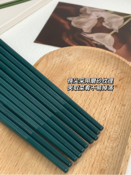 平时打理起来不要太方便,油腻、菜汁一冲即净,不用洗洁精,家里小朋友都能自己洗筷子。没有裂缝、凹槽,不怕藏污纳垢;不吸水、不怕潮湿。 复古的墨绿色的神仙配色,好看极了 妥妥的颜值控会喜欢的款式