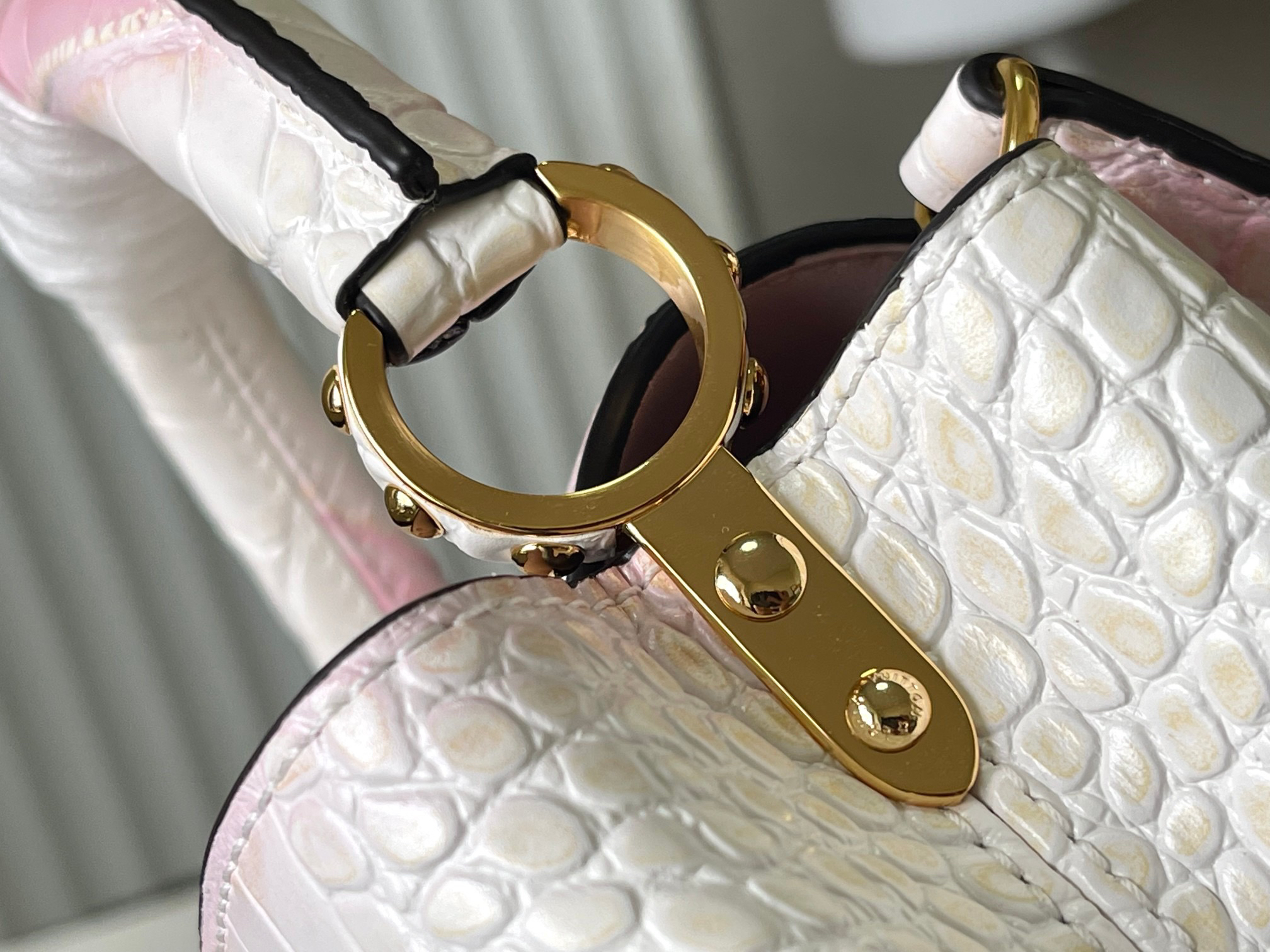秋冬特惠💰1430 渠道级LV 新品 te级LV N93163/M48865白拼鳄鱼纹 此款珍贵的Capucines手袋由鳄鱼皮纹 经上高光处理 闪耀迷人 奢华的山羊皮衬里与闪闪发光的金属饰件 特有的Capucines搭盖既可收入包内 展示字母标识 又可外翻 呈现Monogram Flower图案 出行的理想配饰 Size: 21 * 14 * 8 CM