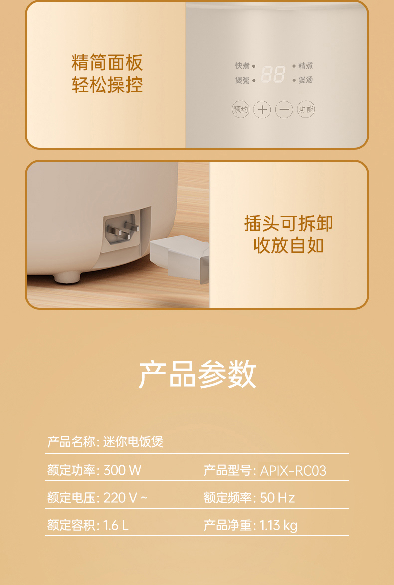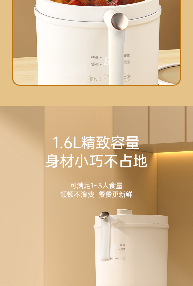 【一人食多功能锅】安本素迷你小饭煲 多功能烹煮煲炖 可煲汤/煮饭/炖煮 智能调压 精准控温 24小时智能预约 1.6L容量APIX-RC03