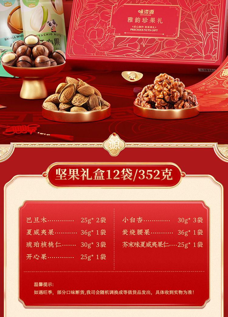 【12袋纯坚果】味滋源年货坚果礼盒夏威夷果巴旦木腰果年货大礼包