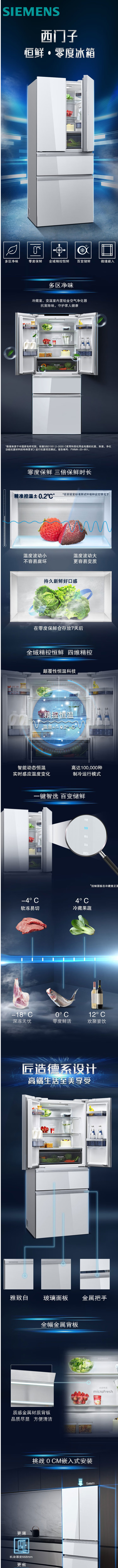 西门子(SIEMENS)(202649)462升对开四门冰箱风冷双循环微缝嵌入零度保鲜精控恒温双区净味一级能效KM47FS20TI