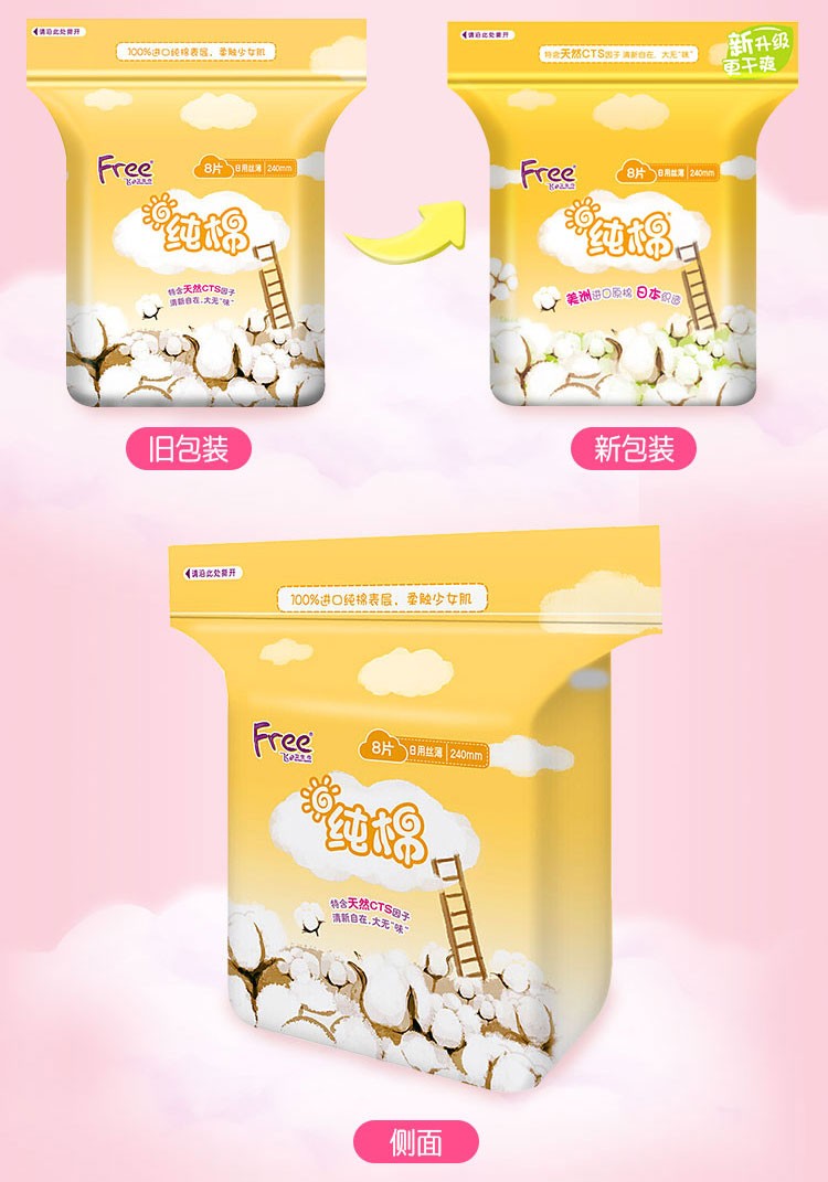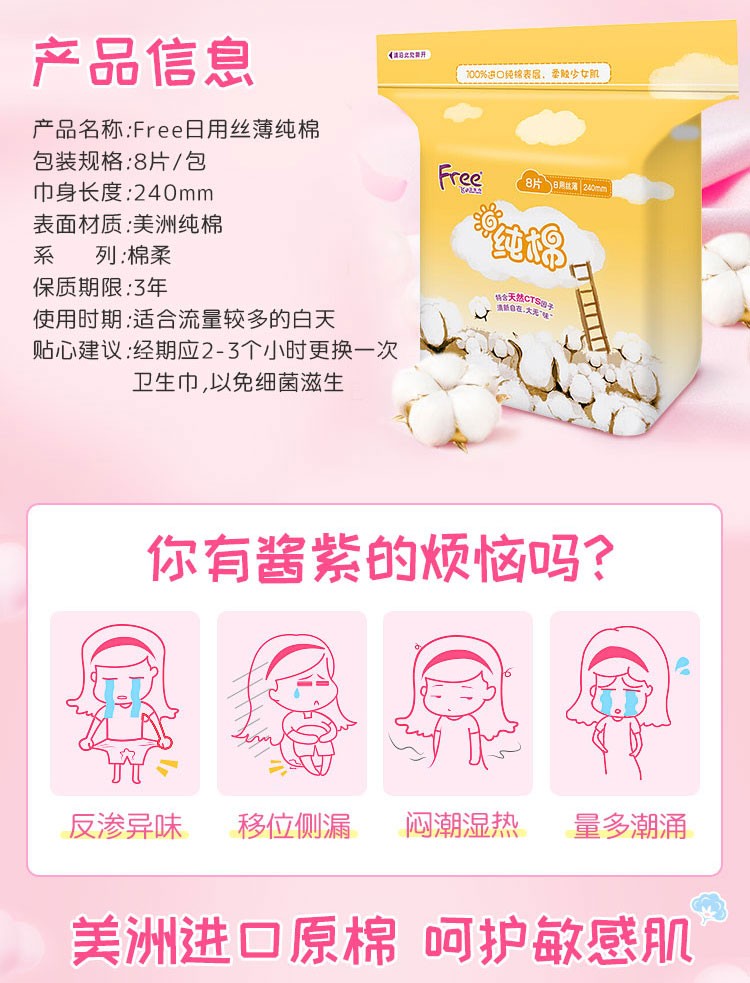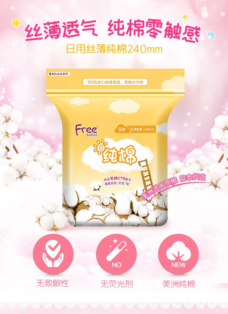 【亚欧超市】Free飞日用丝薄纯棉表层卫生巾240mm