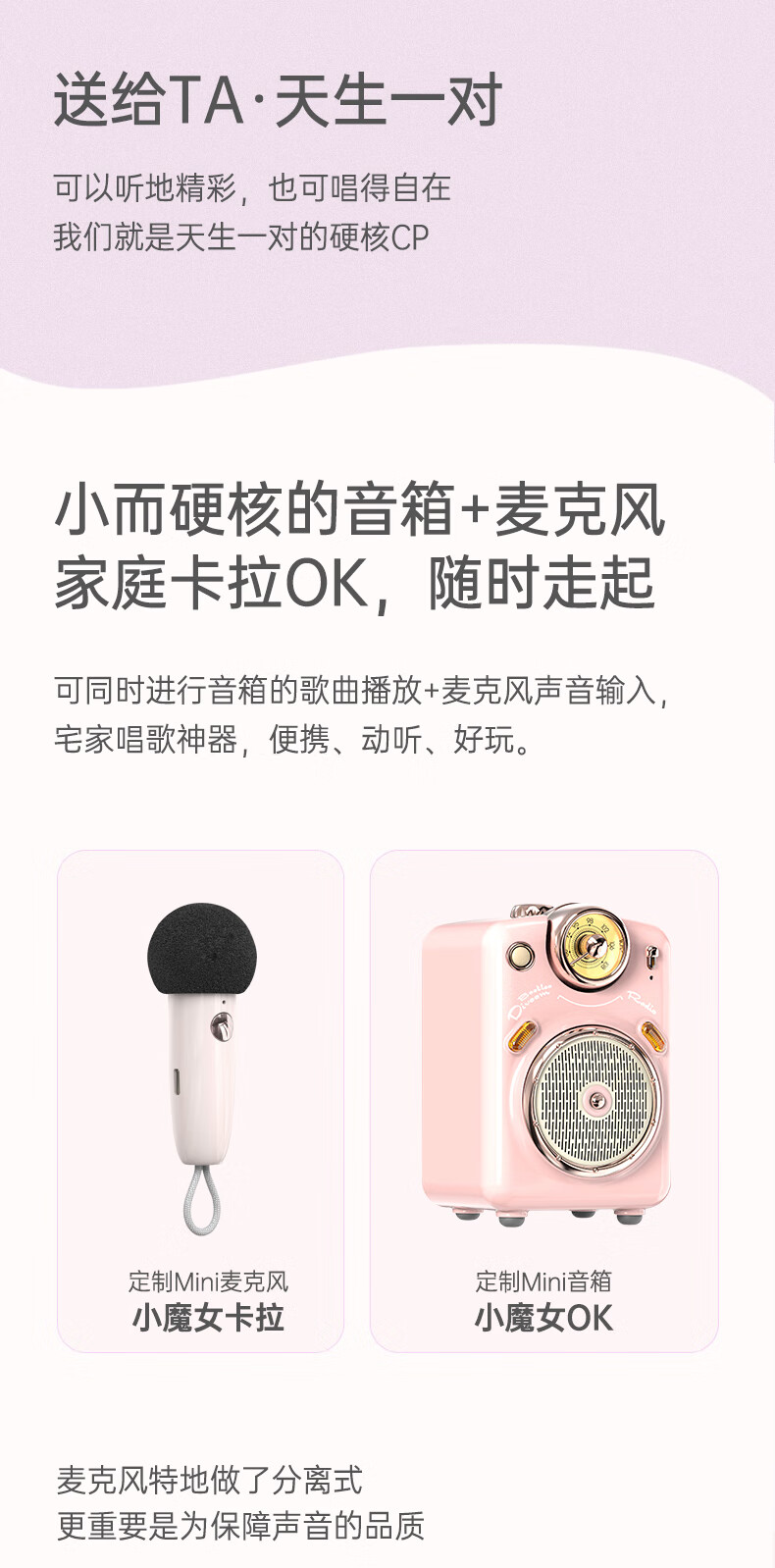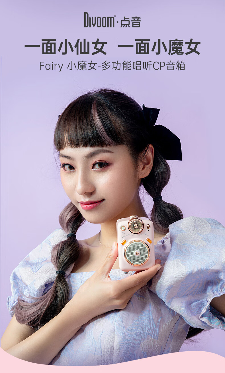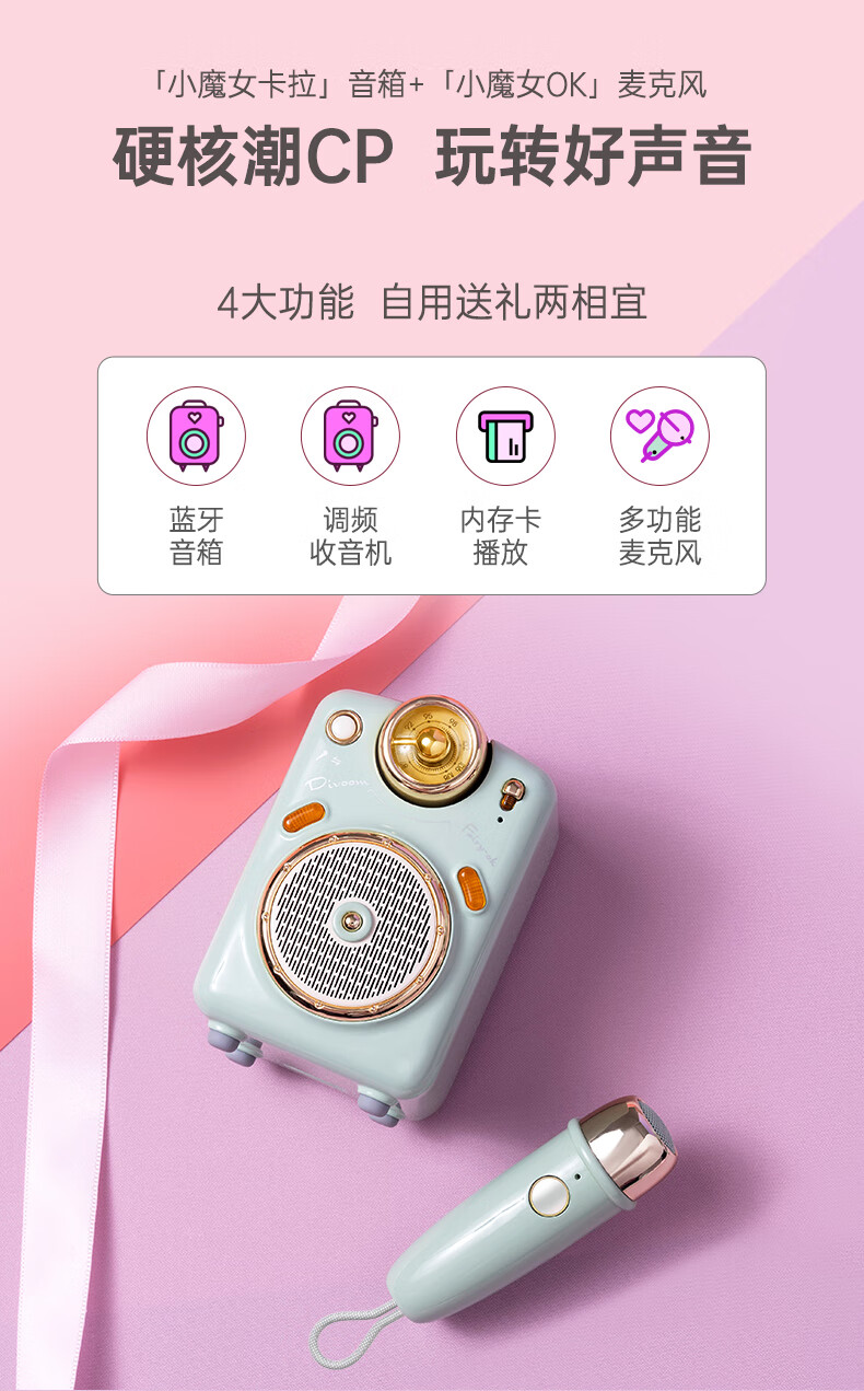 Divoom点音小魔女无线家用k歌音响蓝牙音箱迷你家庭ktv唱歌麦克风卡拉OK套装户外便携式插卡小收音机礼物