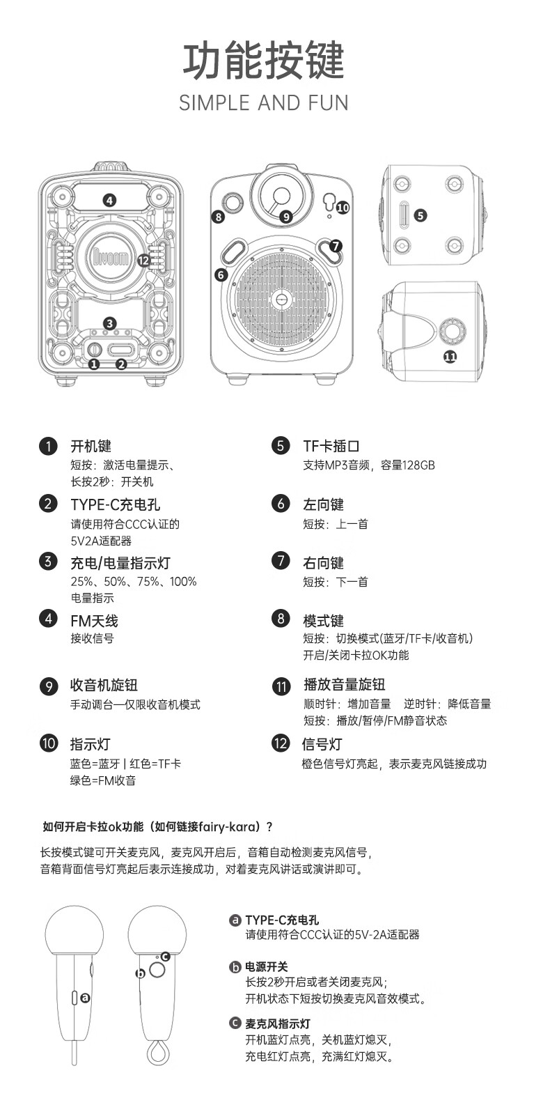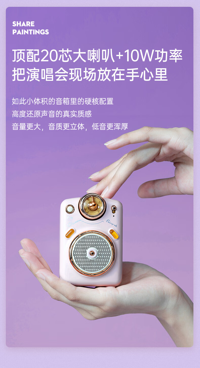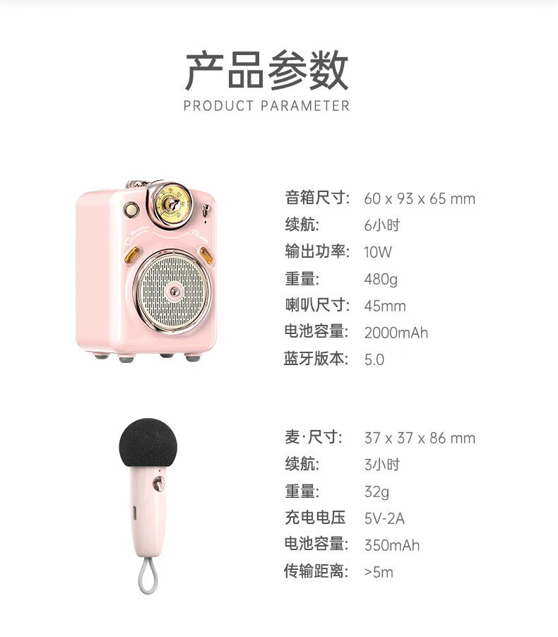 Divoom点音小魔女无线家用k歌音响蓝牙音箱迷你家庭ktv唱歌麦克风卡拉OK套装户外便携式插卡小收音机礼物