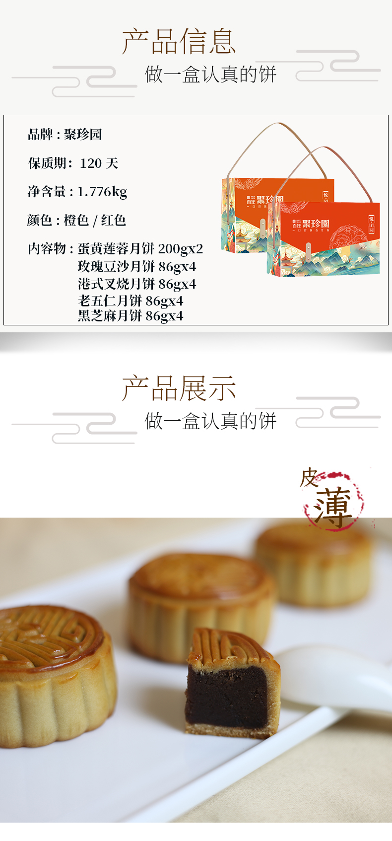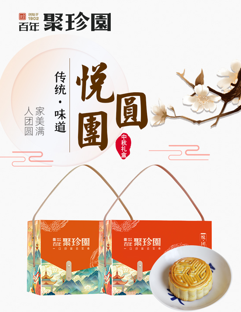【严选】聚珍园悦团圆中秋月饼礼盒1776g (红色/橙色随机发) (厂家直发)