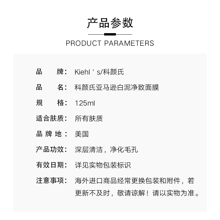 科颜氏 Kiehl's马逊白泥净致面膜 125ml (新老版本随机)