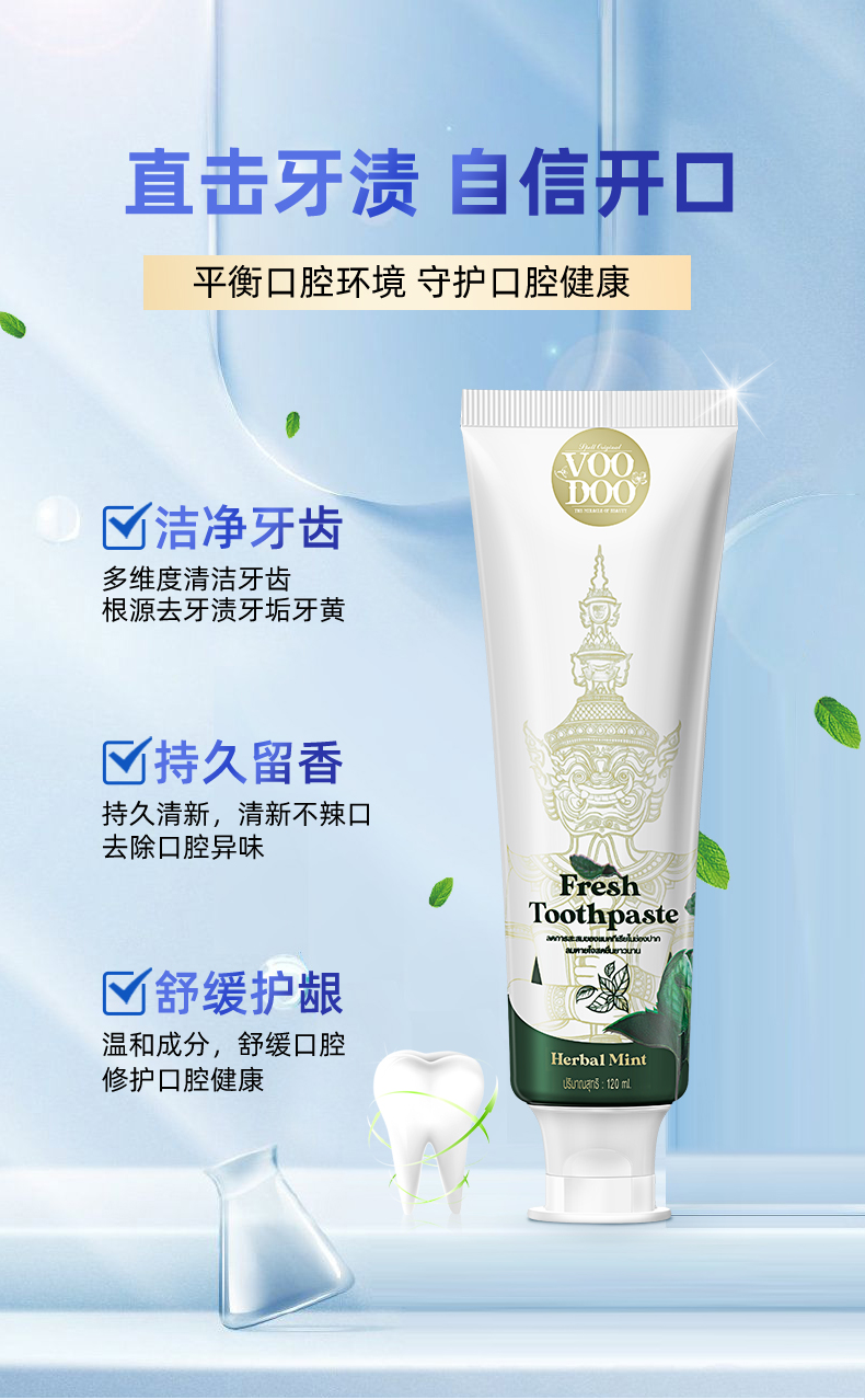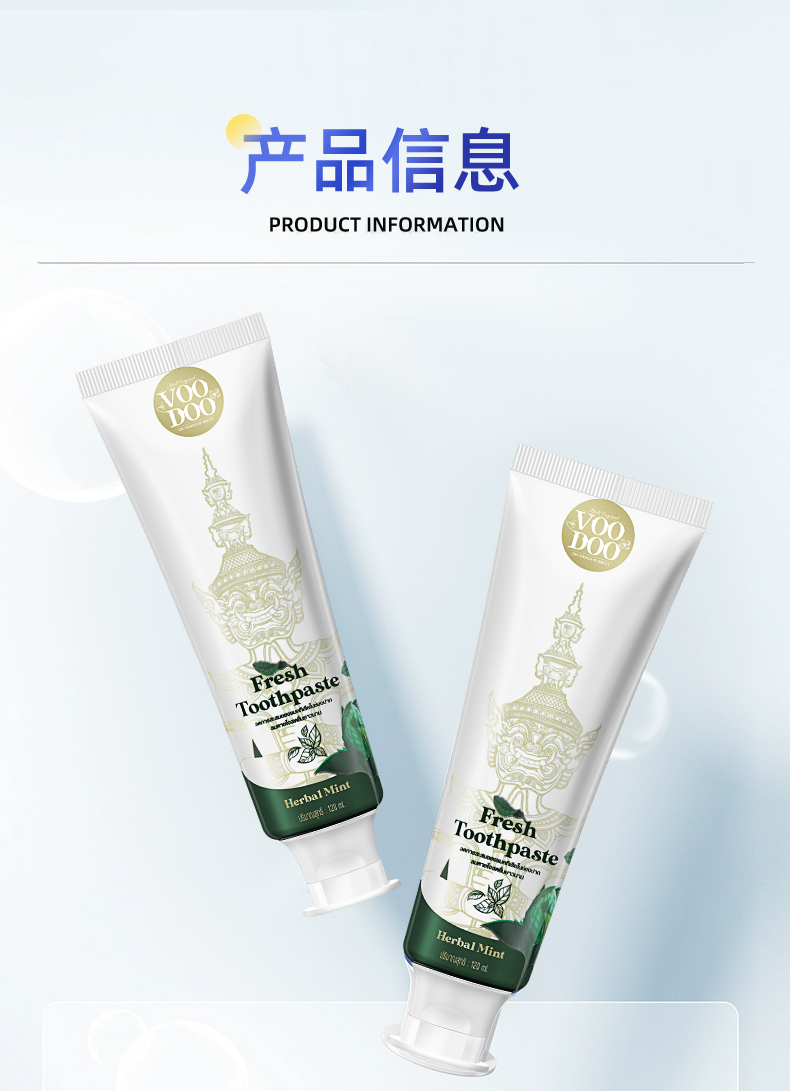 活动热卖【泰国711好物推荐】VOODOO泰国青草清新牙膏 植物精粹 清新自然 独特花纹风格 120ml/支