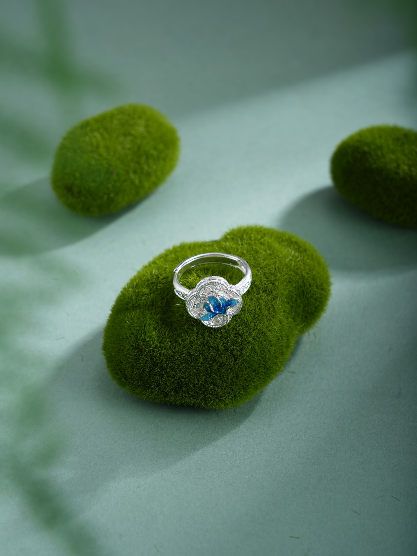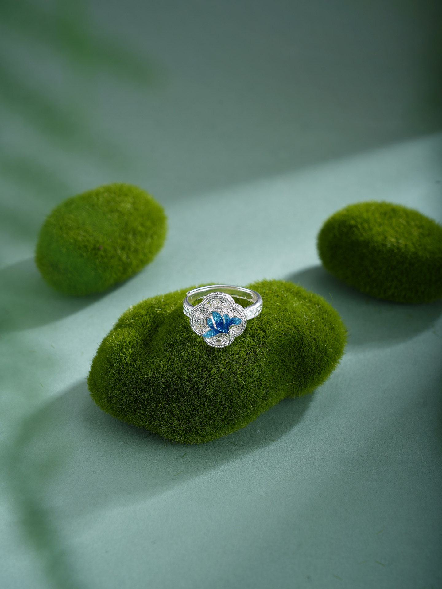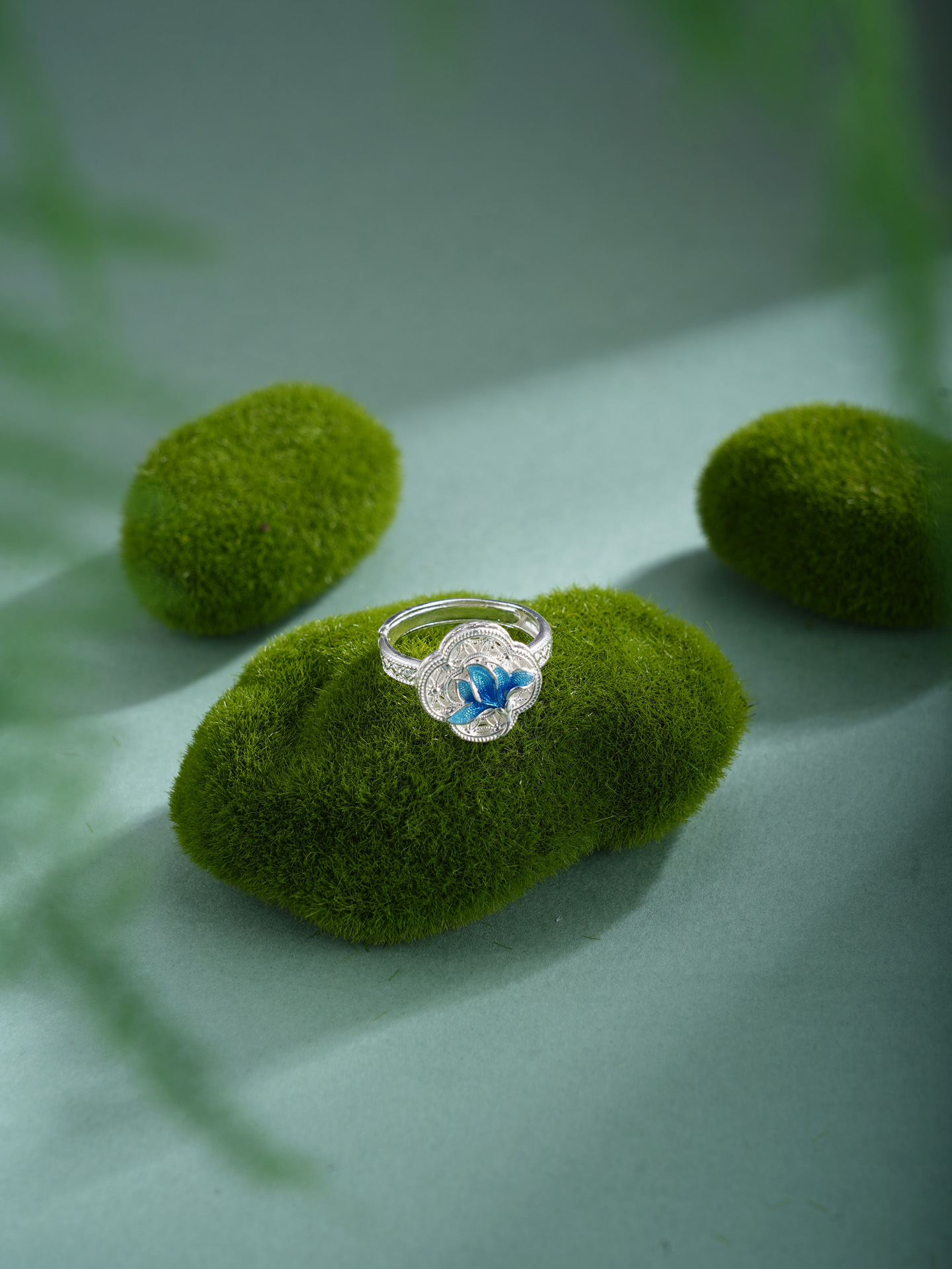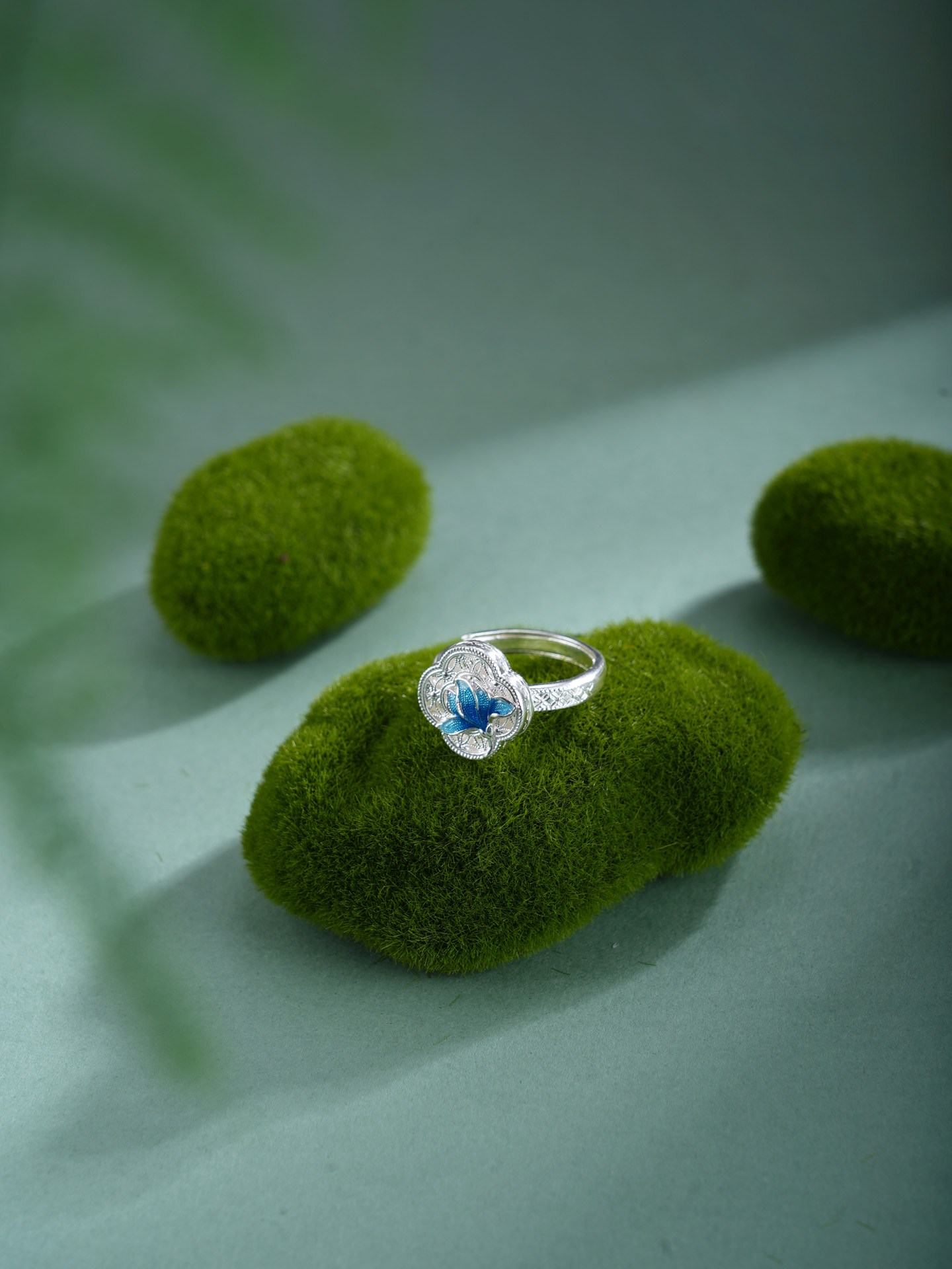 子佩集【轩畔玉兰】银S990戒指【QFJZ011】原创作品花丝珐琅彩四叶玉兰莲2602