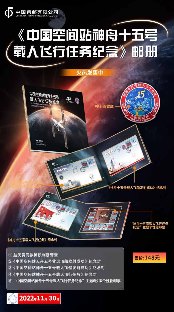 《中国空间站神舟十五号载人飞行任务纪念》邮册