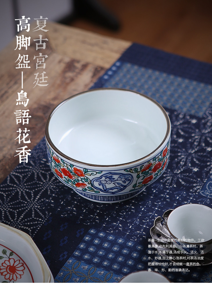 复古宫廷高脚碗_鸟语花香 茶碗料理碗