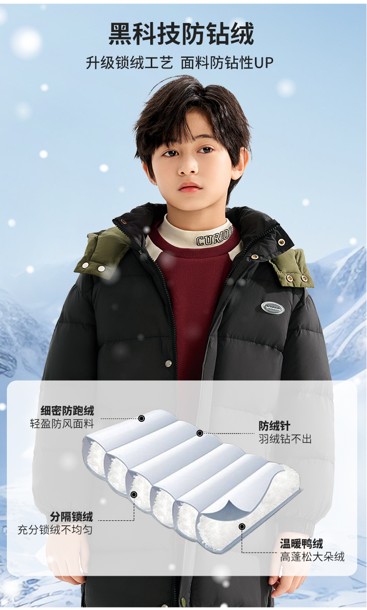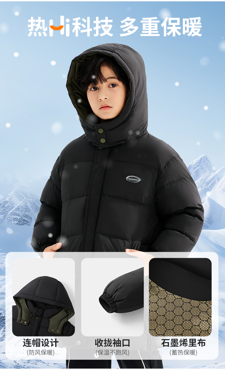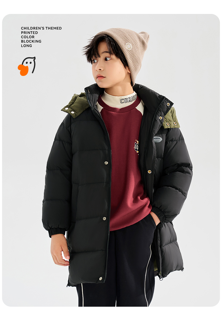 【清仓捡漏】【90白鸭绒+石墨烯发热】【110-160】【可可鸭】男童冬款加厚保暖中长款羽绒服