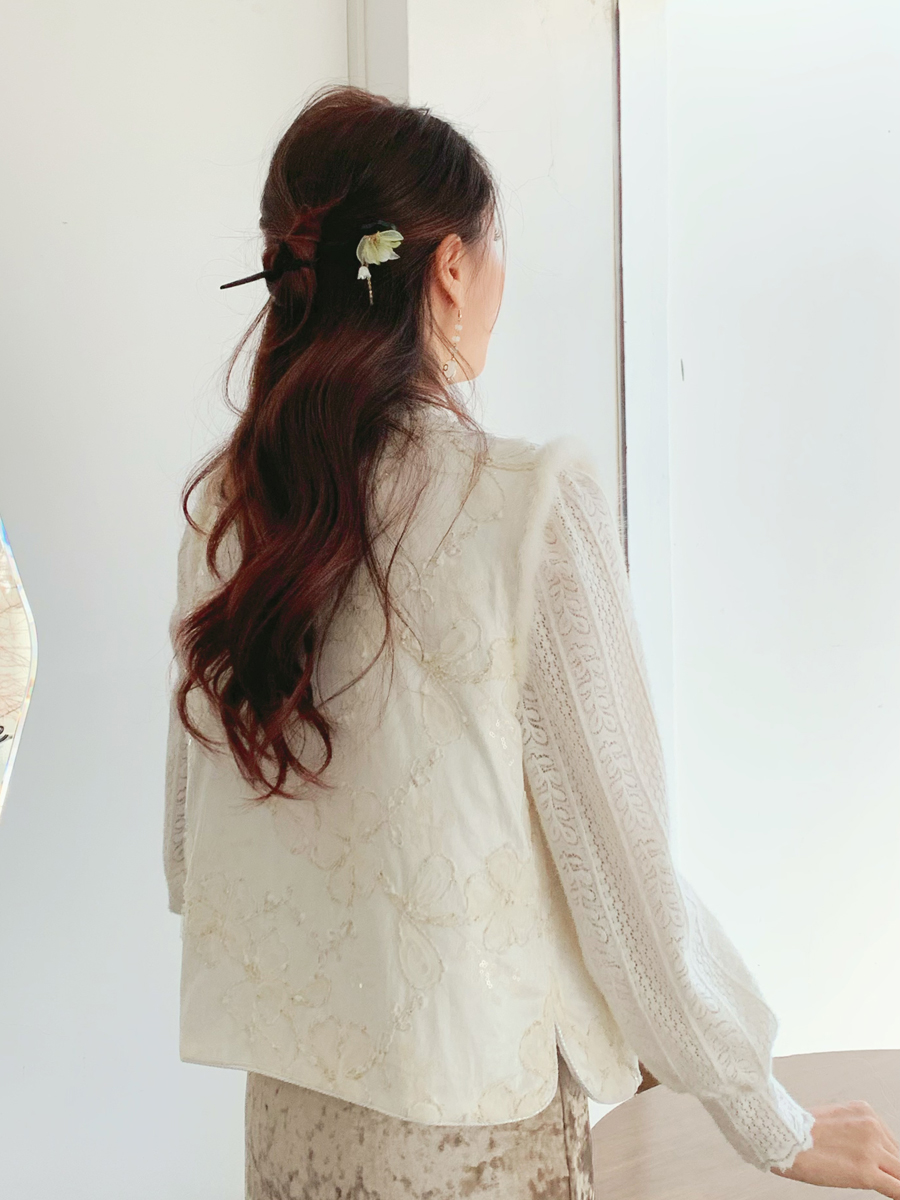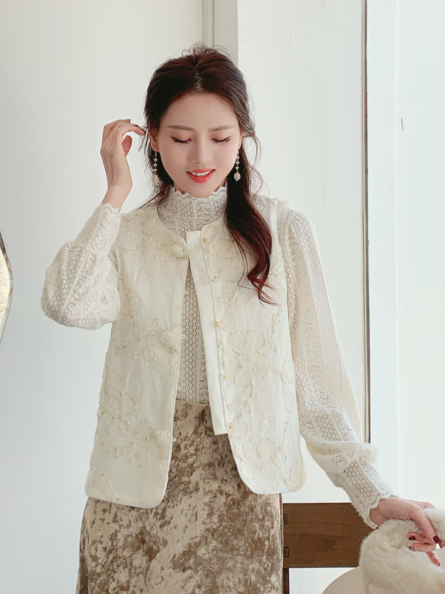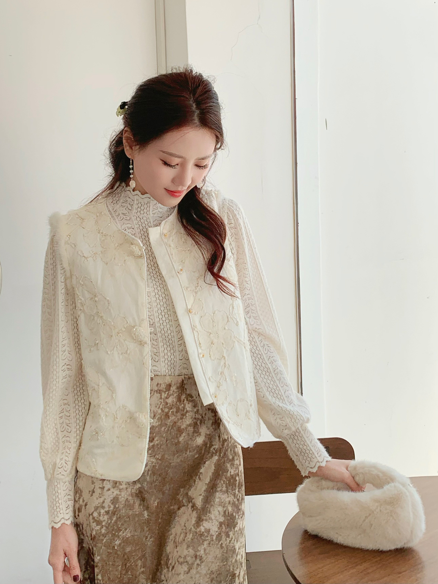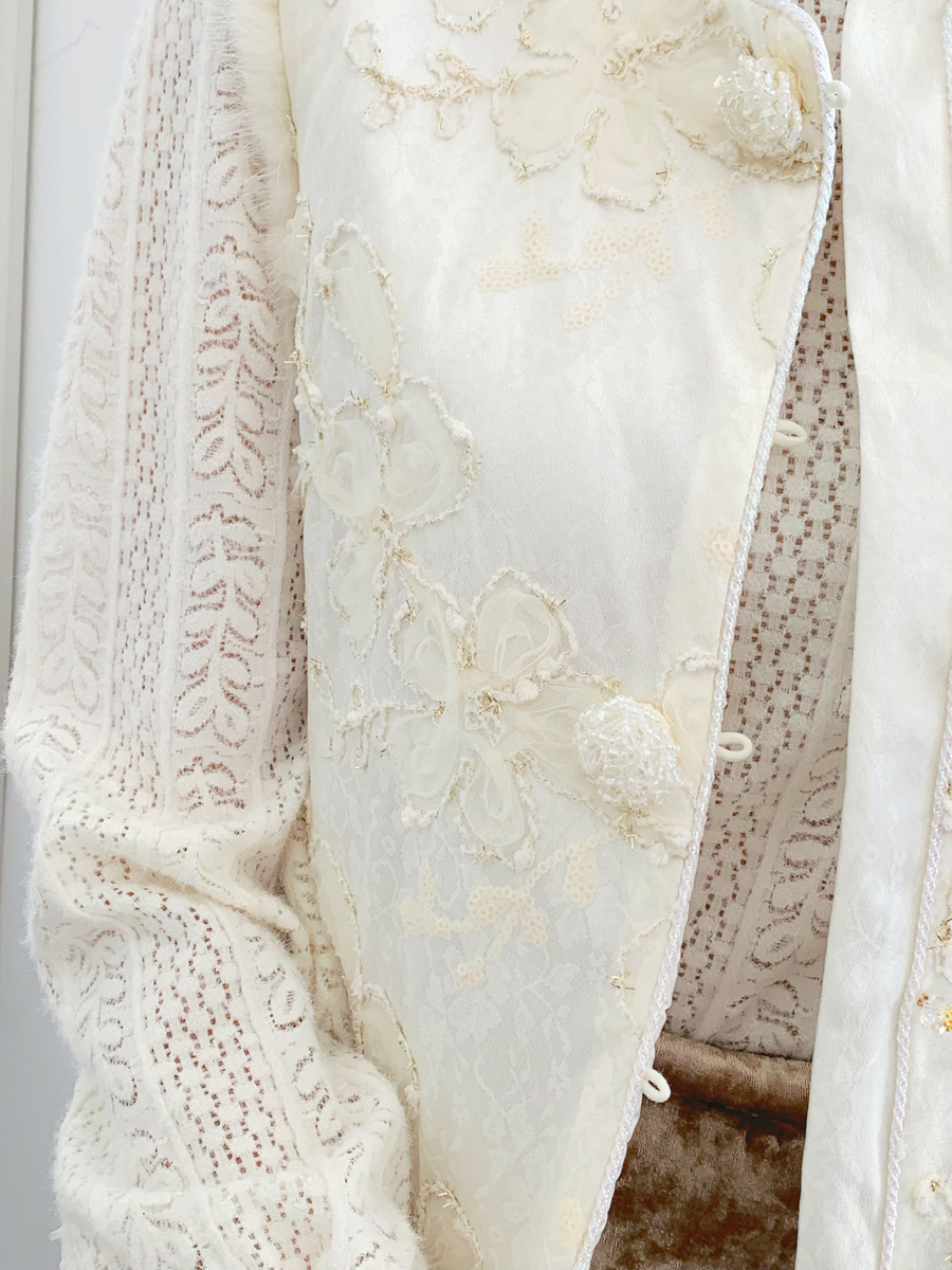 【百图lulu定制】【雪绒花马甲】雪绒花 金线编织 提花暗纹 水晶扣 夹棉 拼水貂毛 马甲