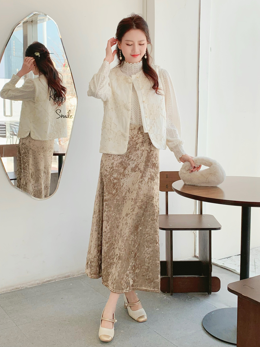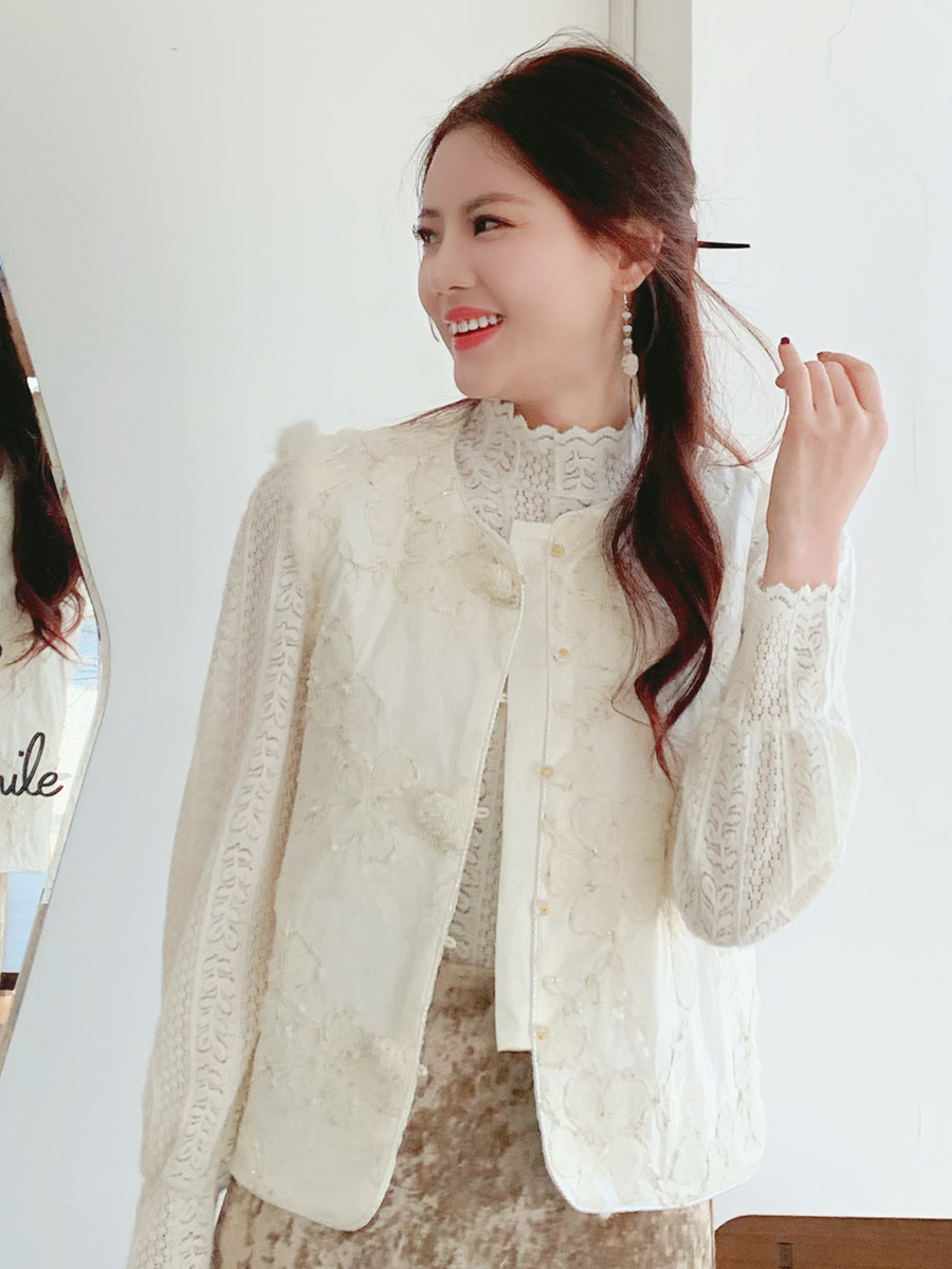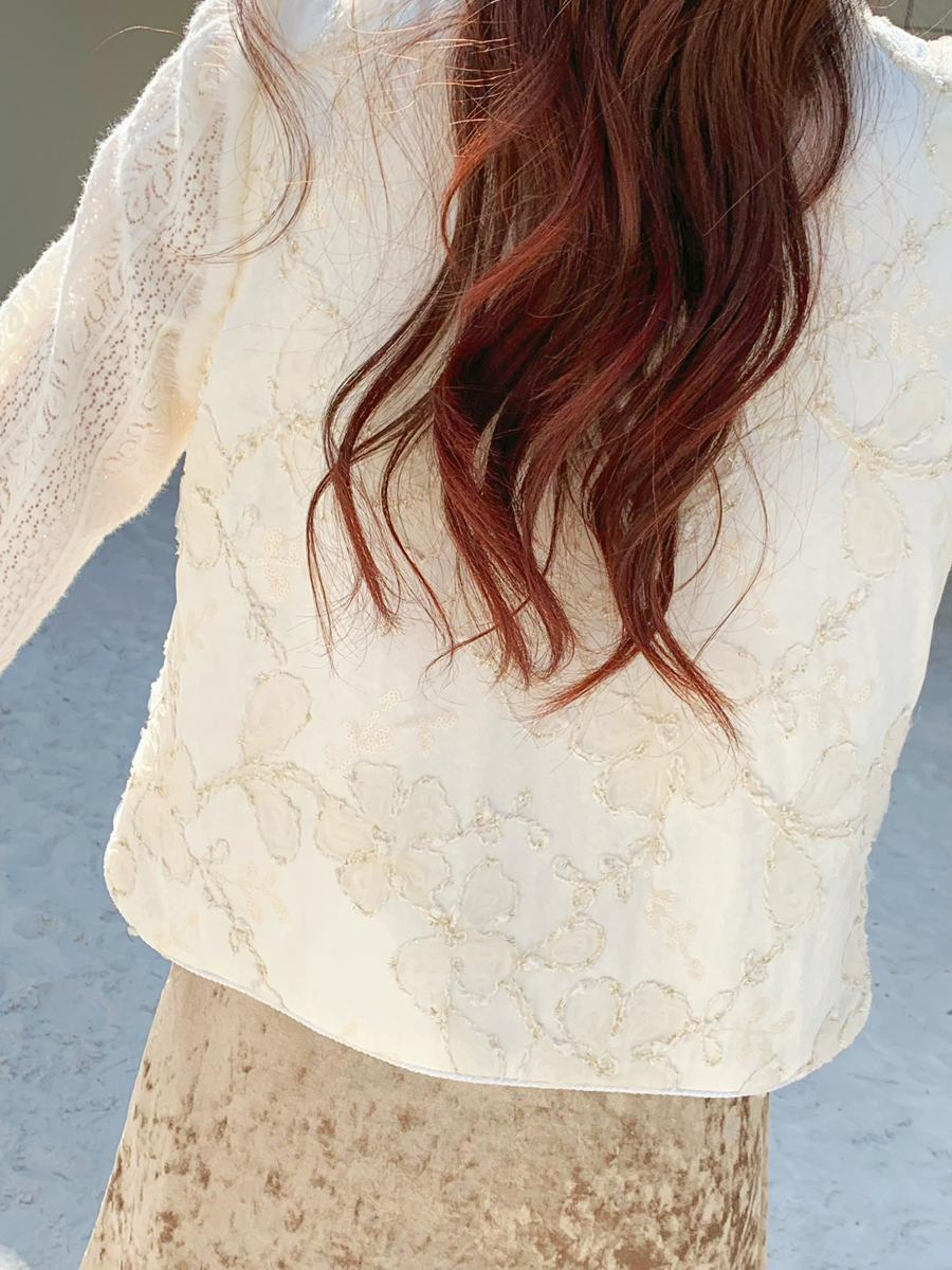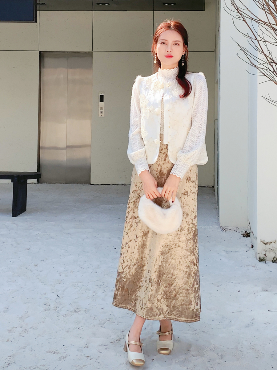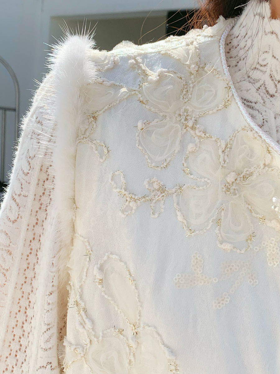 【百图lulu定制】【雪绒花马甲】雪绒花 金线编织 提花暗纹 水晶扣 夹棉 拼水貂毛 马甲
