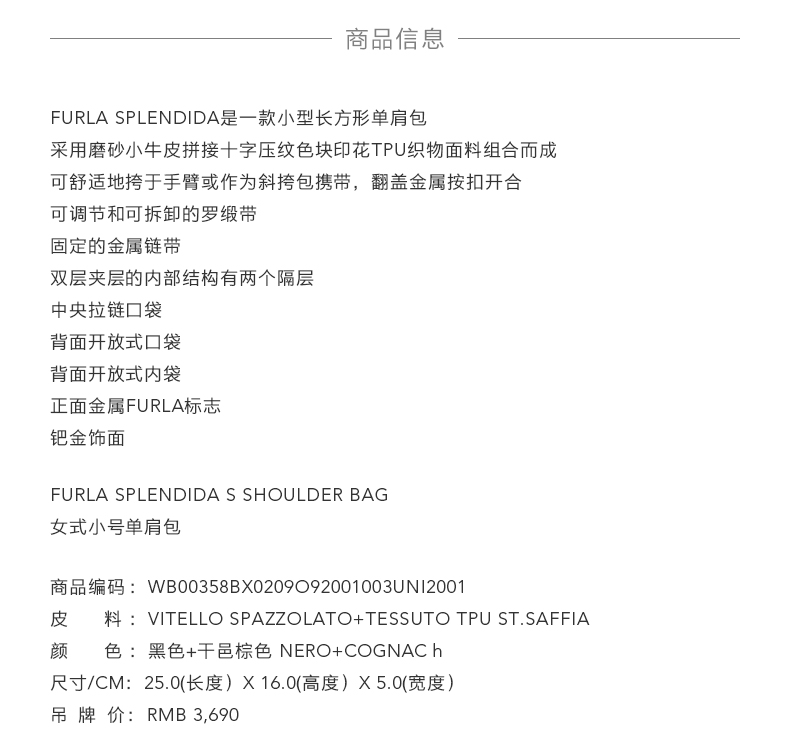 FURLA芙拉SPLENDIDA 女士撞色小号单肩包