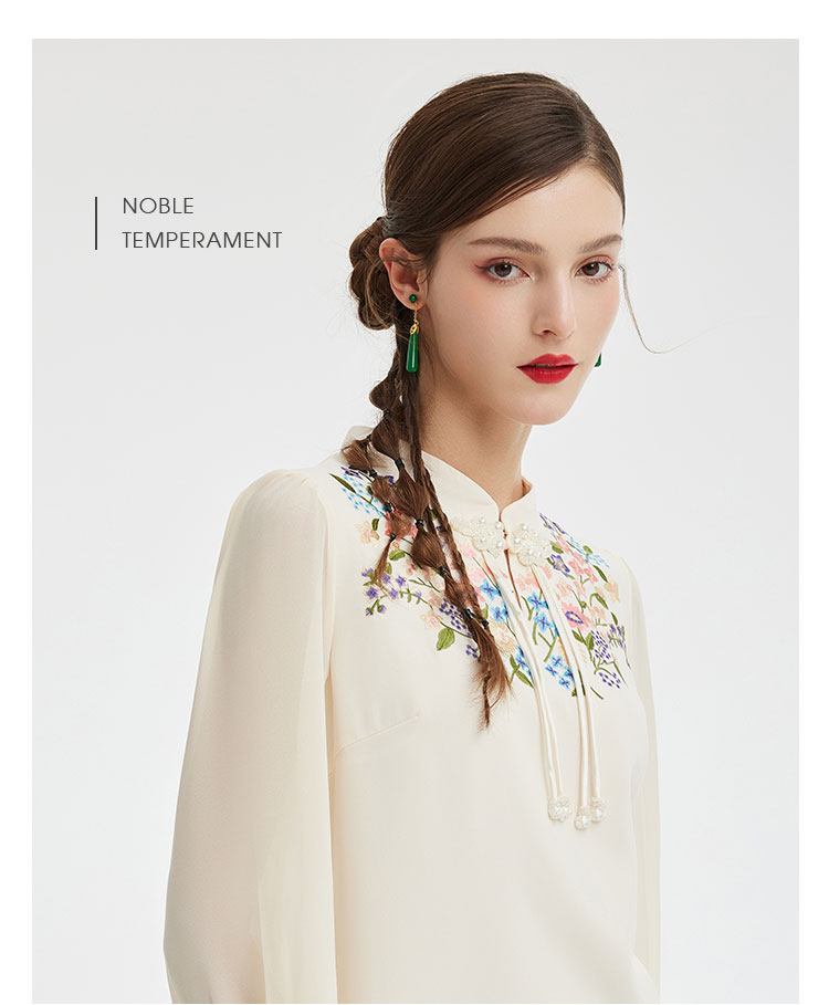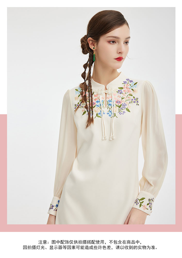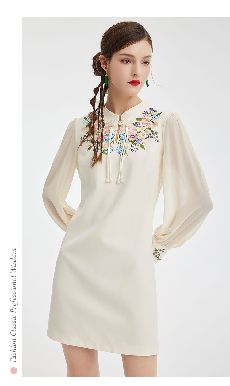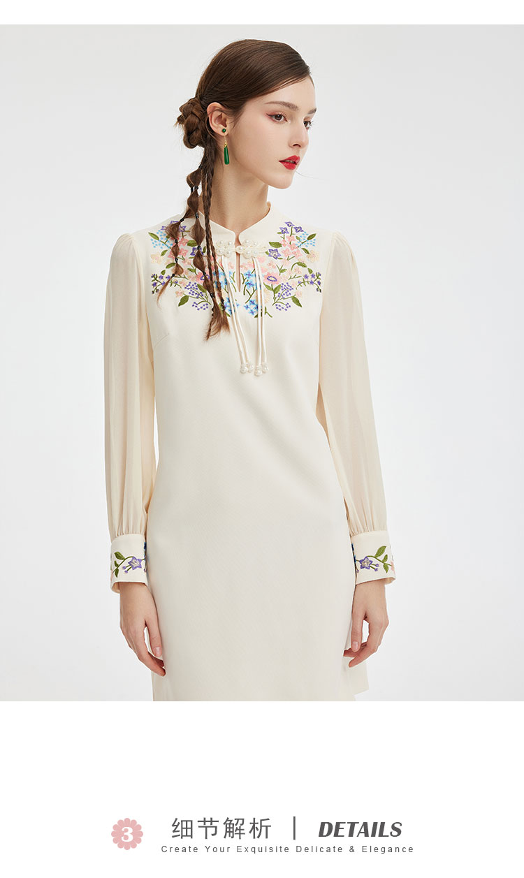 PF834斯尔丽2024新中式改良旗袍领口绣花手工盘扣不挑身材显高连衣裙