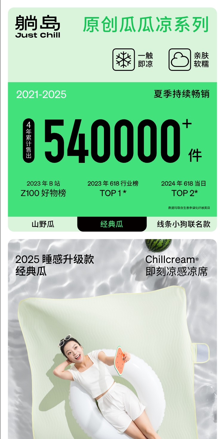 躺岛®️瓜瓜凉系列 · 经典瓜Chillcream®️即刻凉感睡感升级凉席