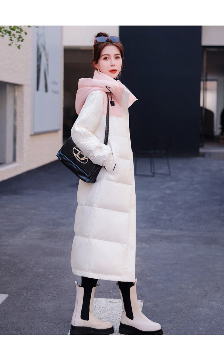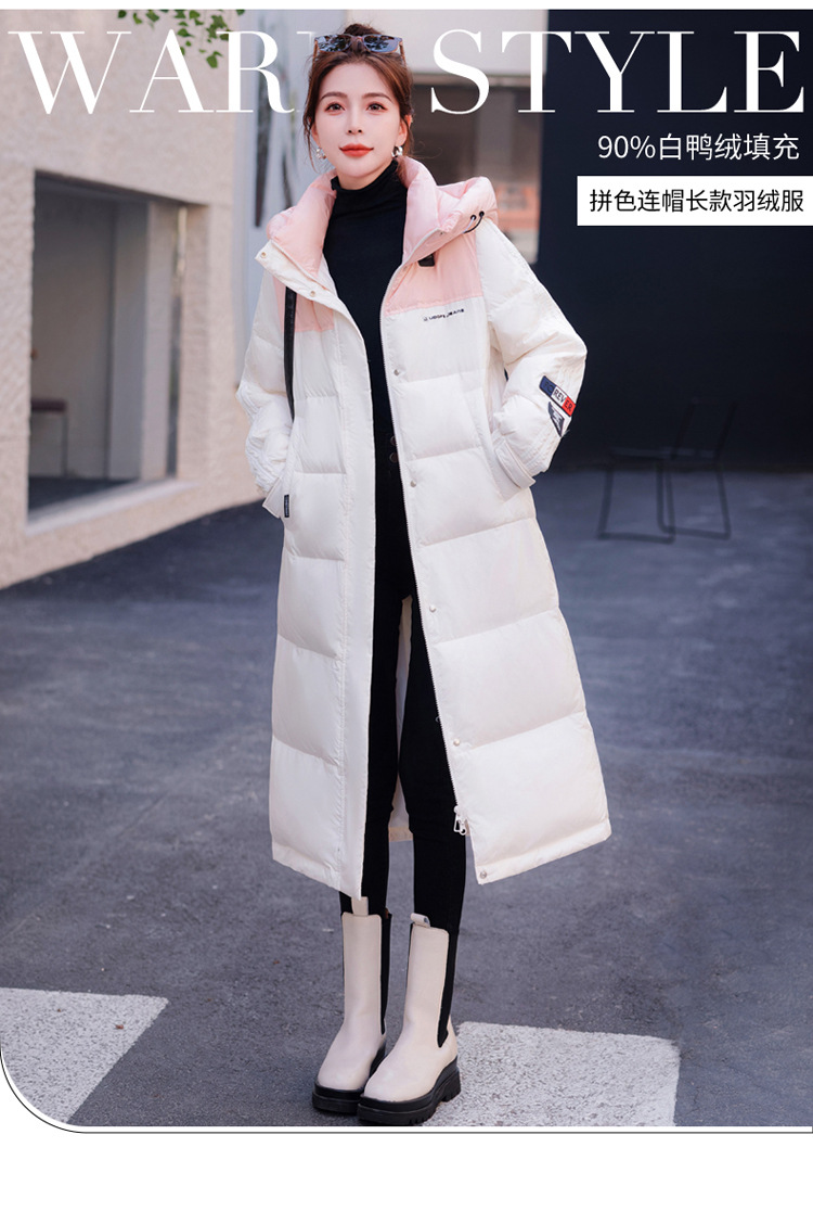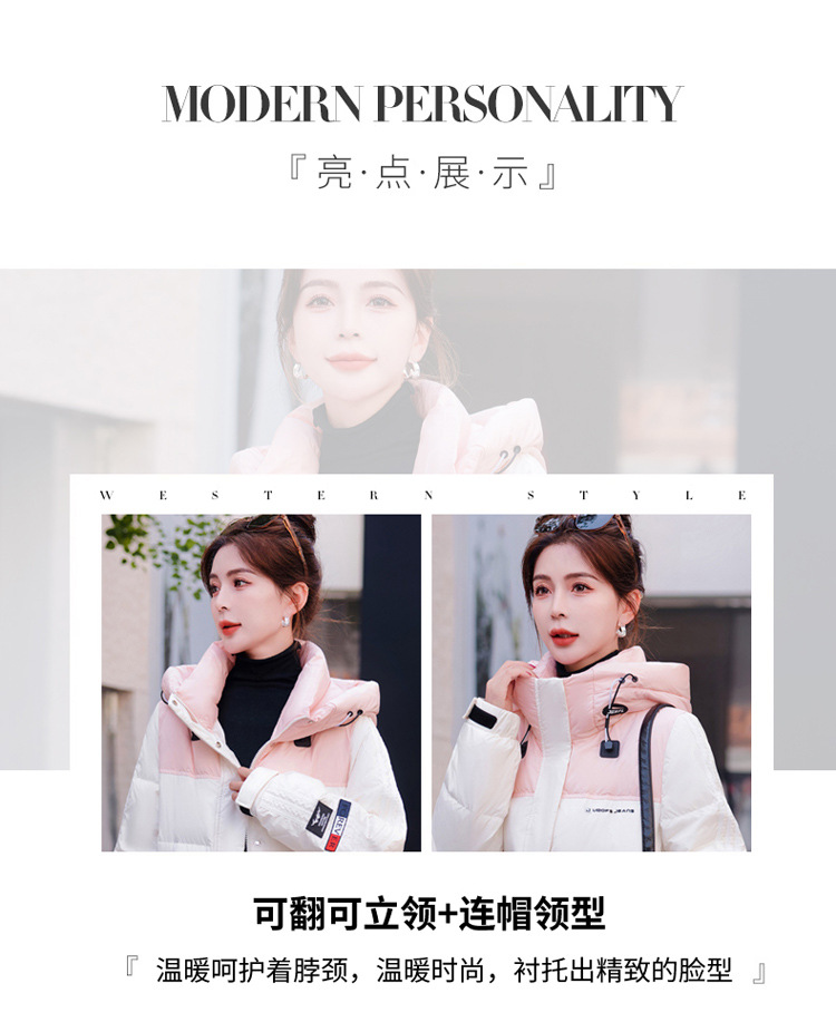 拼接撞色石墨烯羽绒服,连帽加厚90白鸭绒羽绒服HR-YJLY8070
