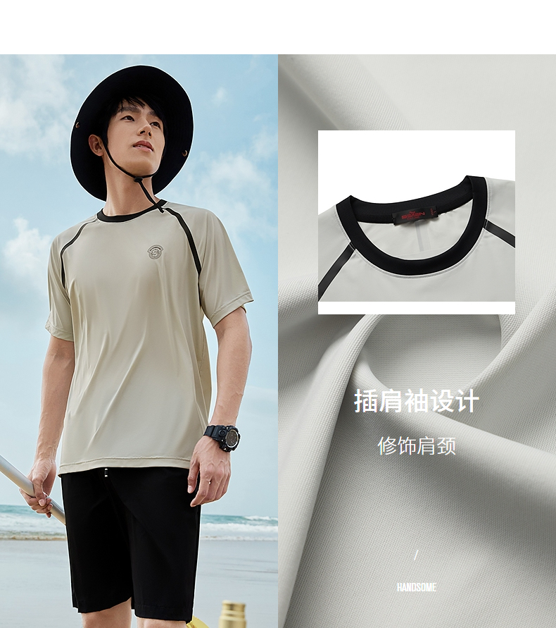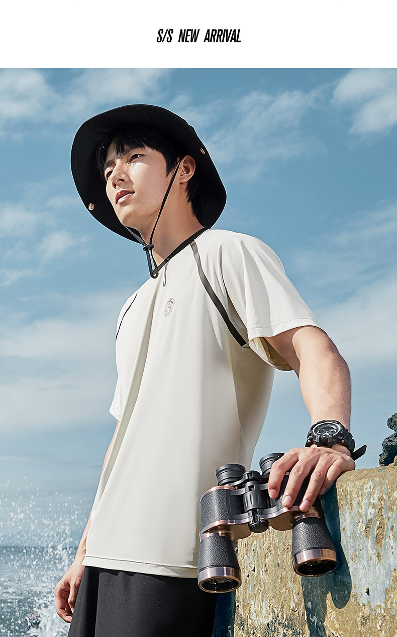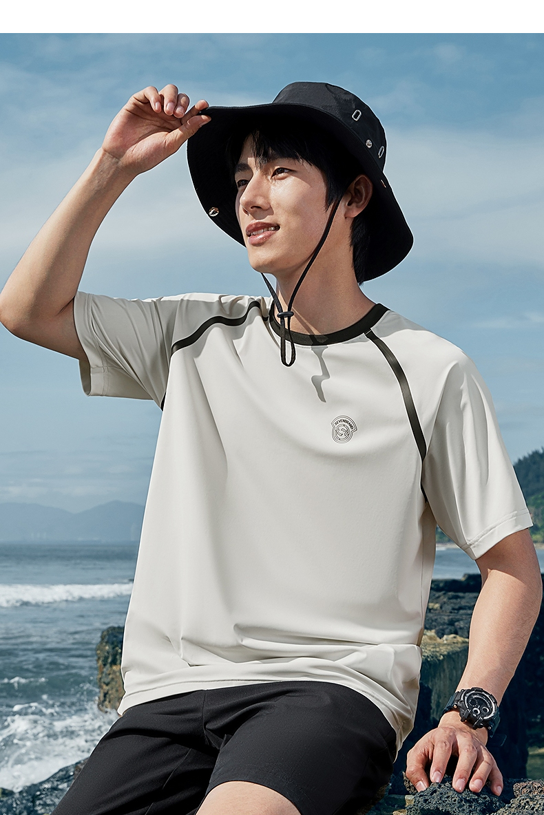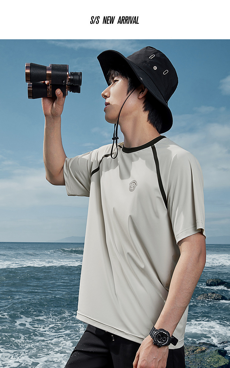 【瞬间凉感】柒牌弹力短袖T恤男夏季新款运动户外休闲圆领上衣薄 126T72340