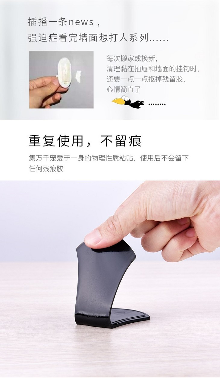 万能随手贴 美国纳米黑科技 水洗重复使用 粘贴支架2合1 无痕吸附防水防潮 木质镜面墙面等材质都能贴