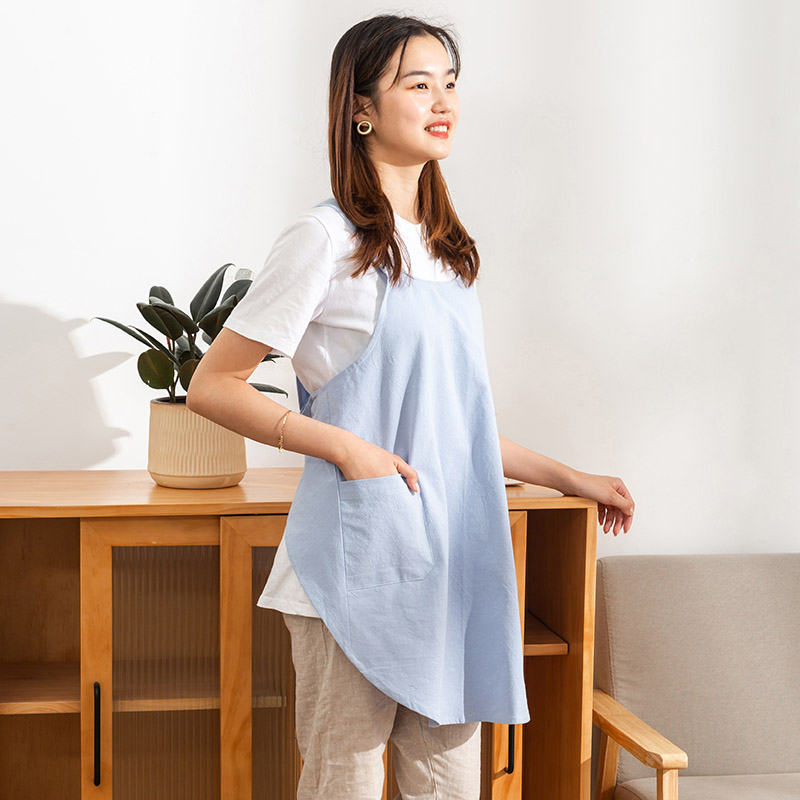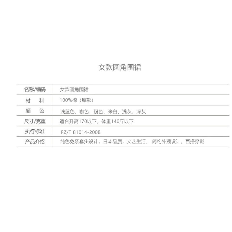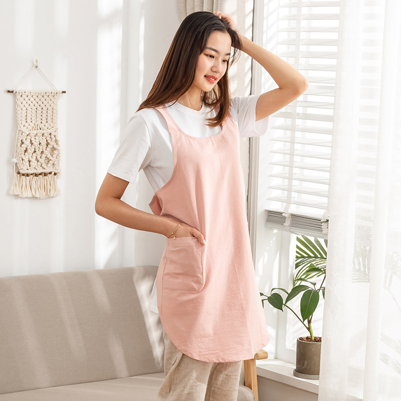 【女款圆角围裙】简约家居围裙纯色免系套头设计纯棉棉麻质感女款围裙