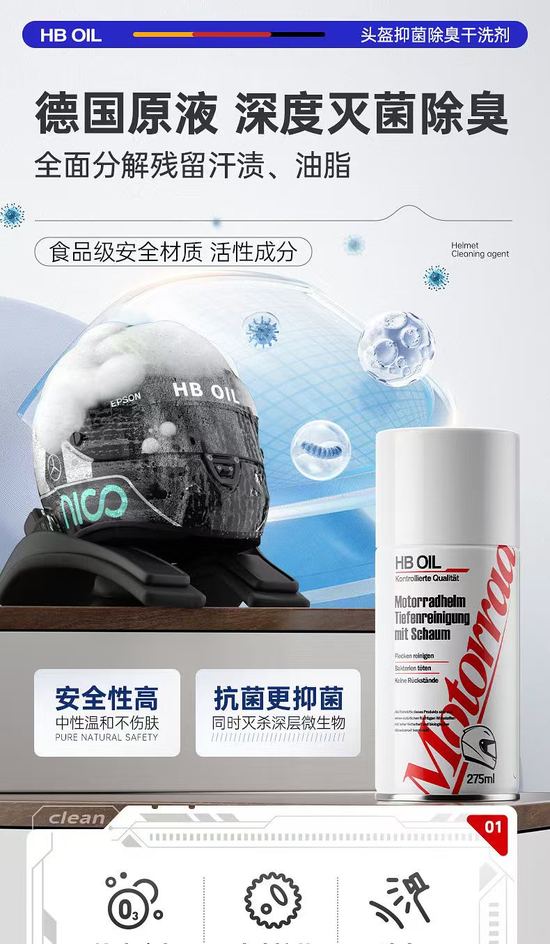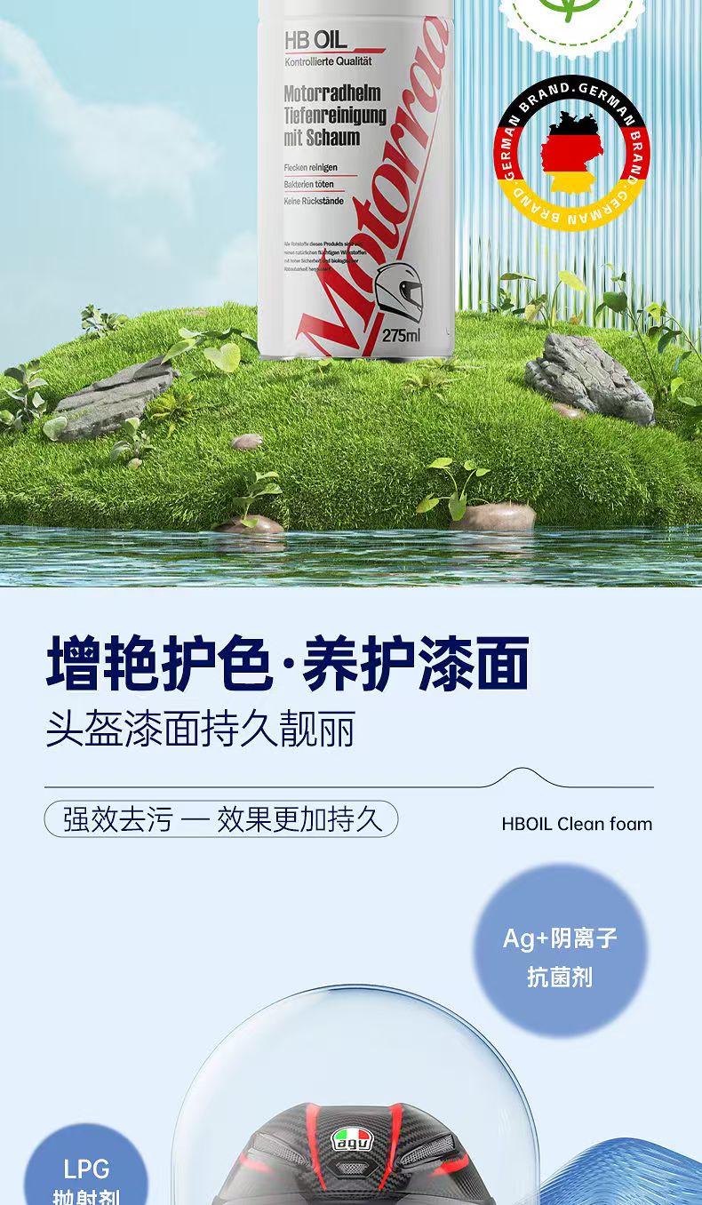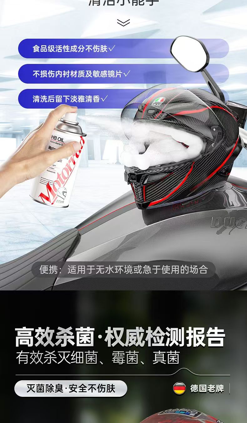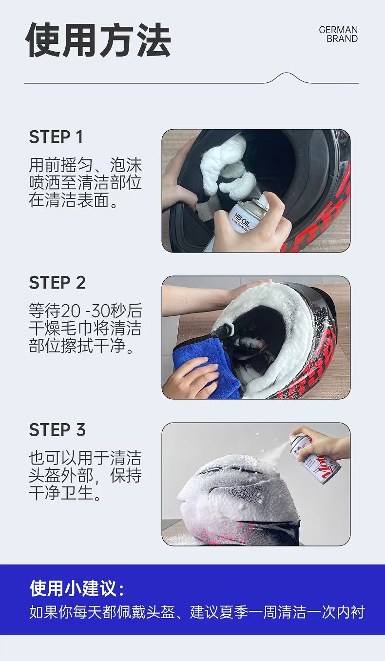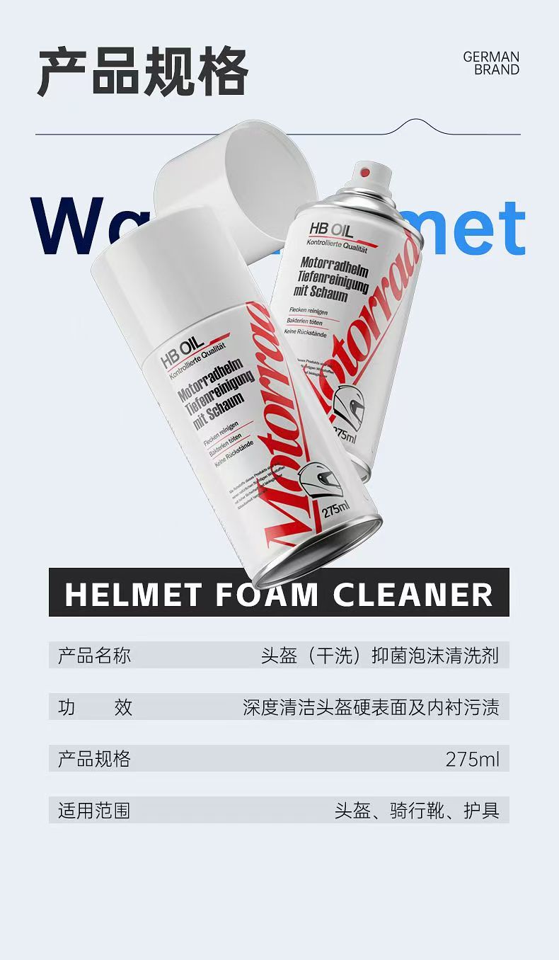 德国HB摩托车头盔清洗剂内衬泡沫清洁内胆