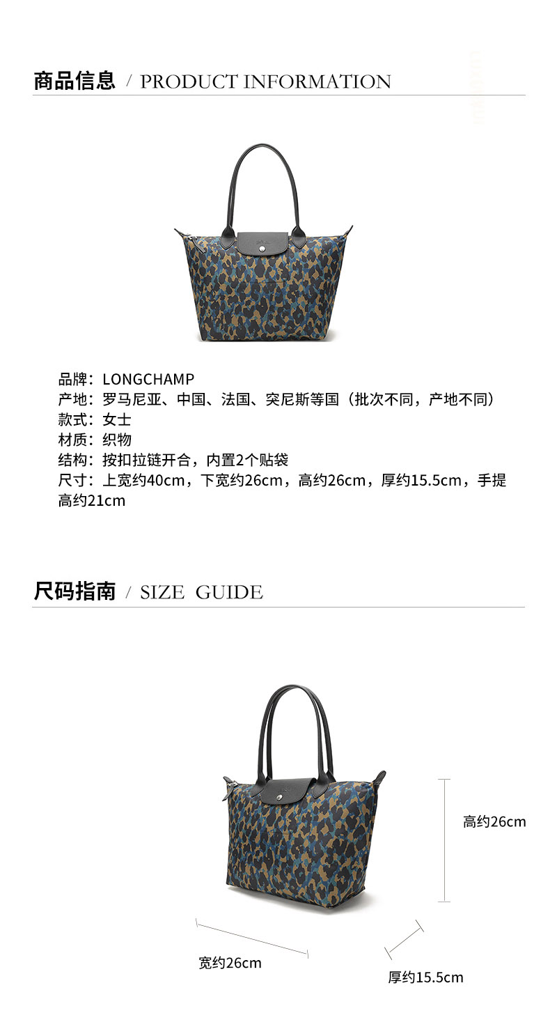 【国内现货】Longchamp/珑骧 2021款 女士LE PLIAGE系列小号织物长柄手提单肩包托特包饺子包 2605 310