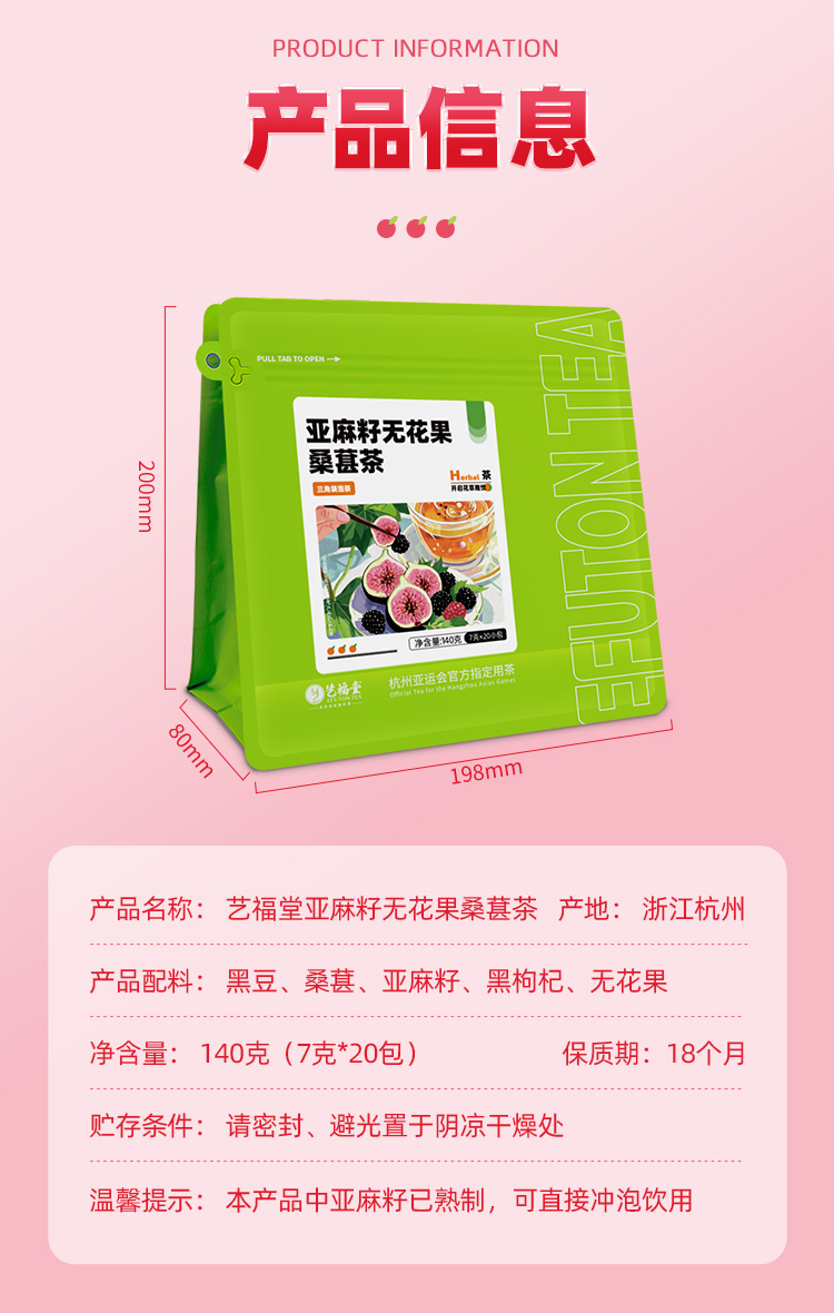艺福堂亚麻籽无花果桑葚茶140g(7g*20)/袋