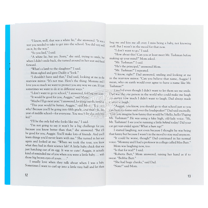 奥古斯特·普尔曼天生面部畸形,这使他一直无法进入普通学校就读。如今,他即将进入比彻预备学校五年级,他至大的愿望就是像其他孩子一样被对待——但他的新同学却始终无法忽略奥吉那张与众不同的脸。故事从奥吉的视角展开,逐渐扩展到他的同学、妹妹、妹妹的男友以及其他人的视角,这些视角交织在一起,描绘出一个社区在同理心、同情心和接纳方面所面临的挣扎。在这个青少年欺凌现象日益严重的社会,这部充满温情和希望的小说令人耳目一新。