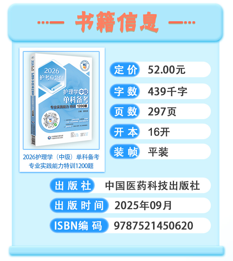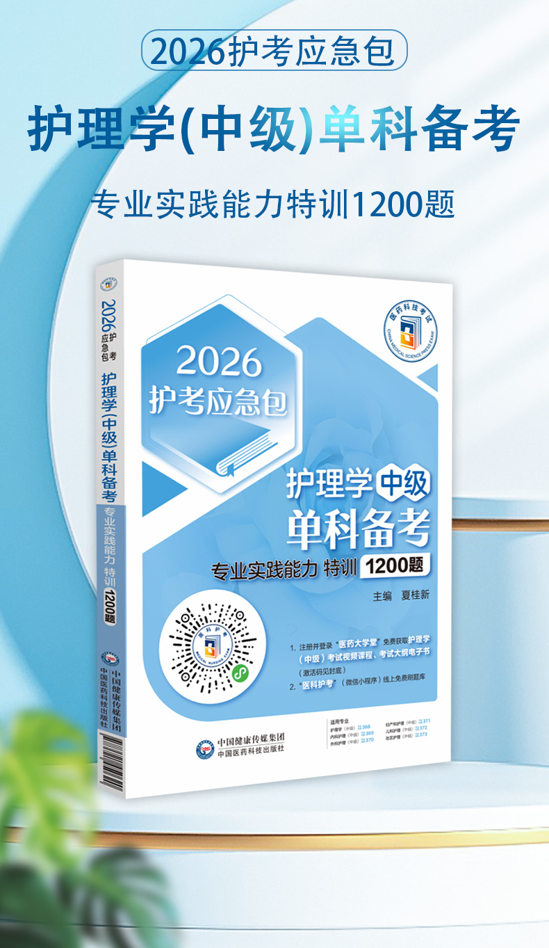 书名:2026护理学(中级)单科备考 专业实践能力特训1200题 护考应急包