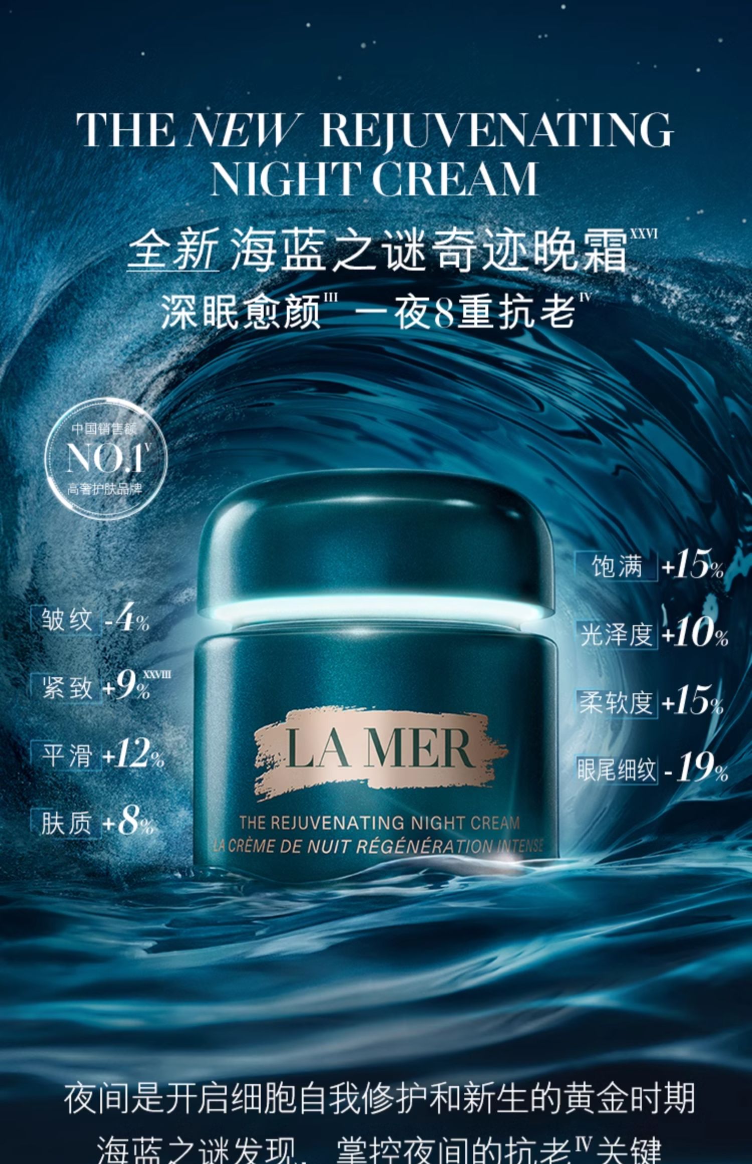 「焕启新肌」LAMER/海蓝之谜奇迹晚霜小样7ML*5瓶赠送礼盒礼袋