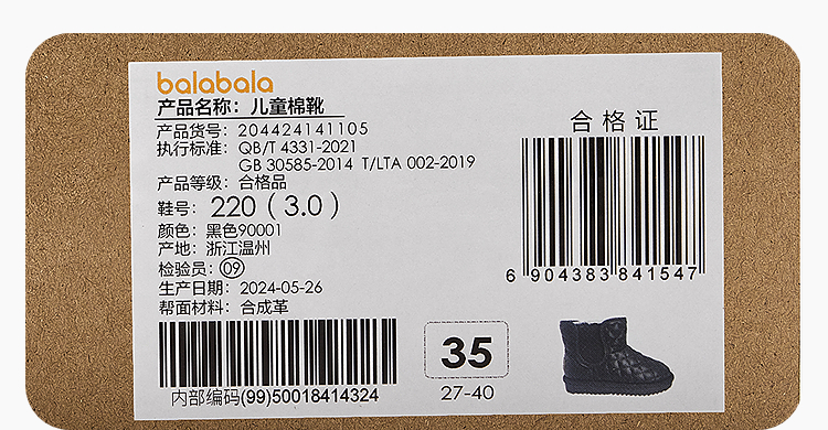 巴拉巴拉童鞋儿童雪地靴男童加厚加绒棉靴冬季靴子防滑棉鞋一脚蹬