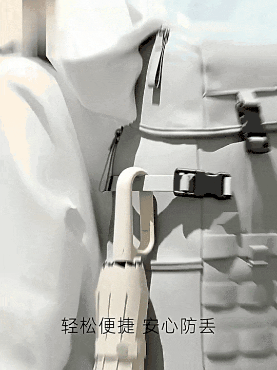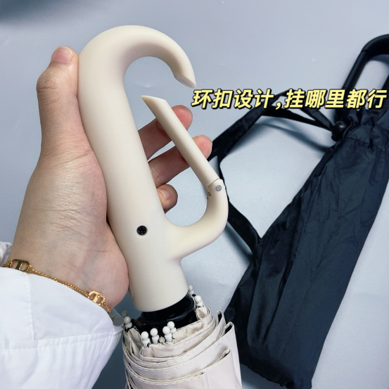不仅开合方便 它独特的手柄设计 ✅环扣式握柄更加符合人体握持,好握好拿 关键是像钥匙扣一样 包包、行李箱、架子上面随处可挂 挎包设计,携带更方便