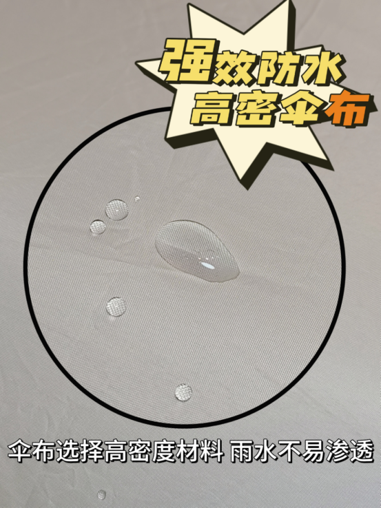伞布的选用上也没少下功夫,采用高密度防水面料 荷叶拒水效应,超强疏水,一甩即干