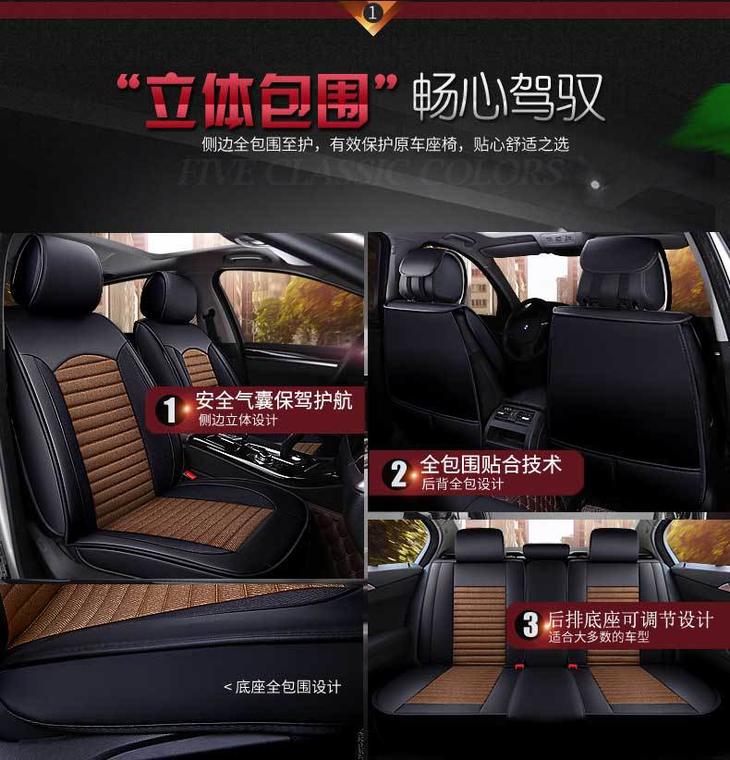 【汽车坐垫】棉麻皮革全包围四季垫通用汽车坐垫汽车座垫套