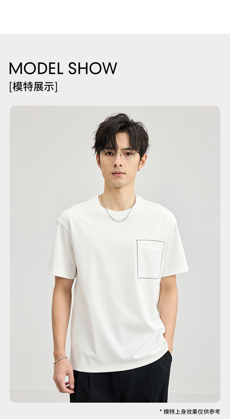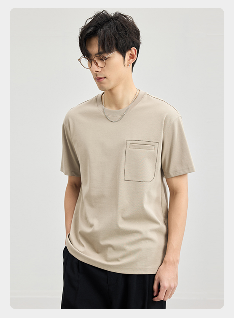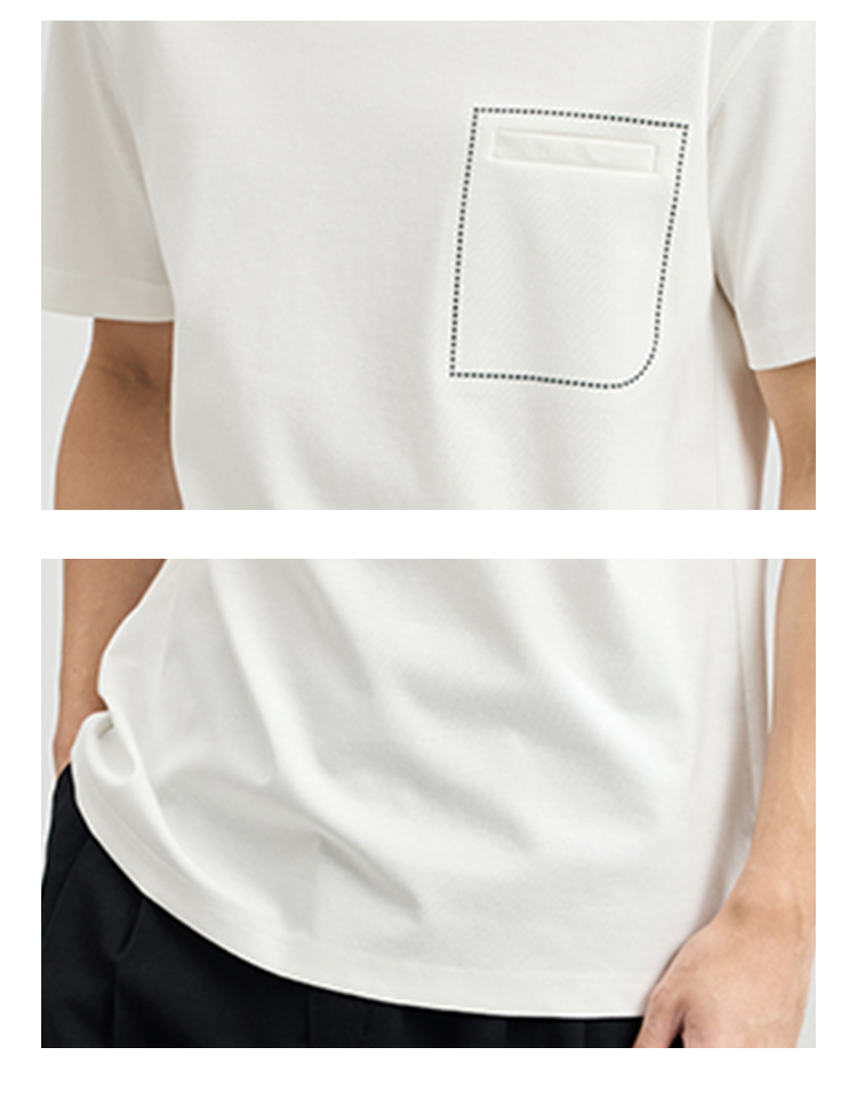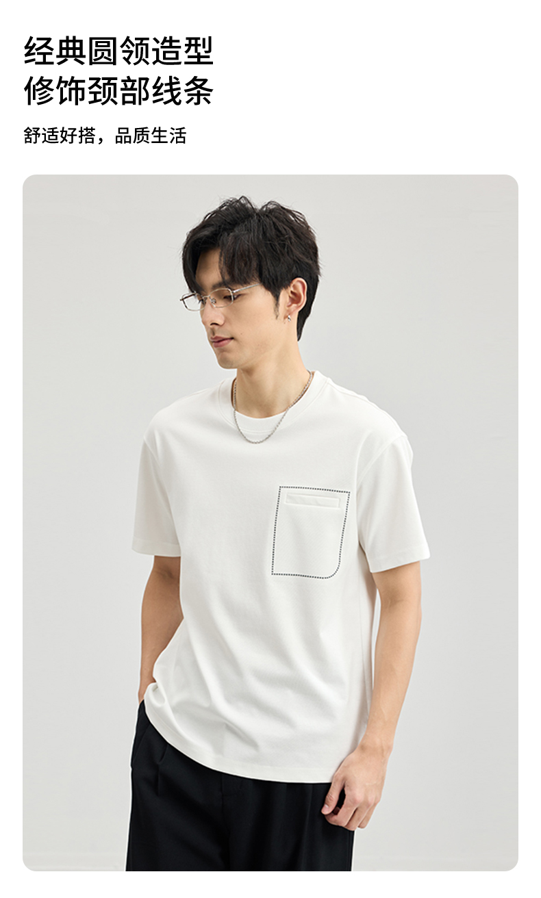 贝纳川醋酸莫代尔绣口袋短袖T恤ECF114005