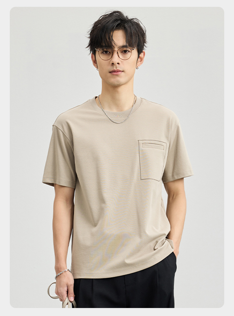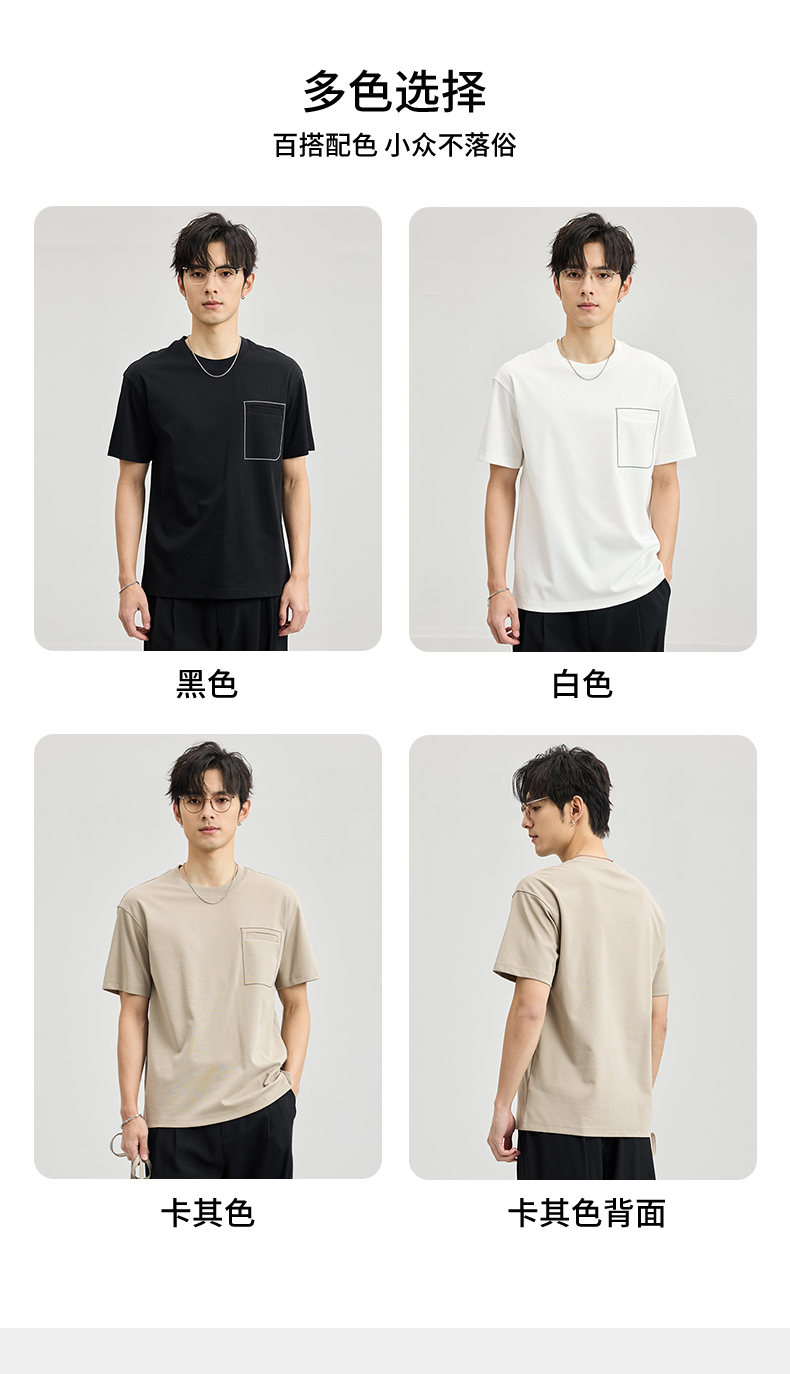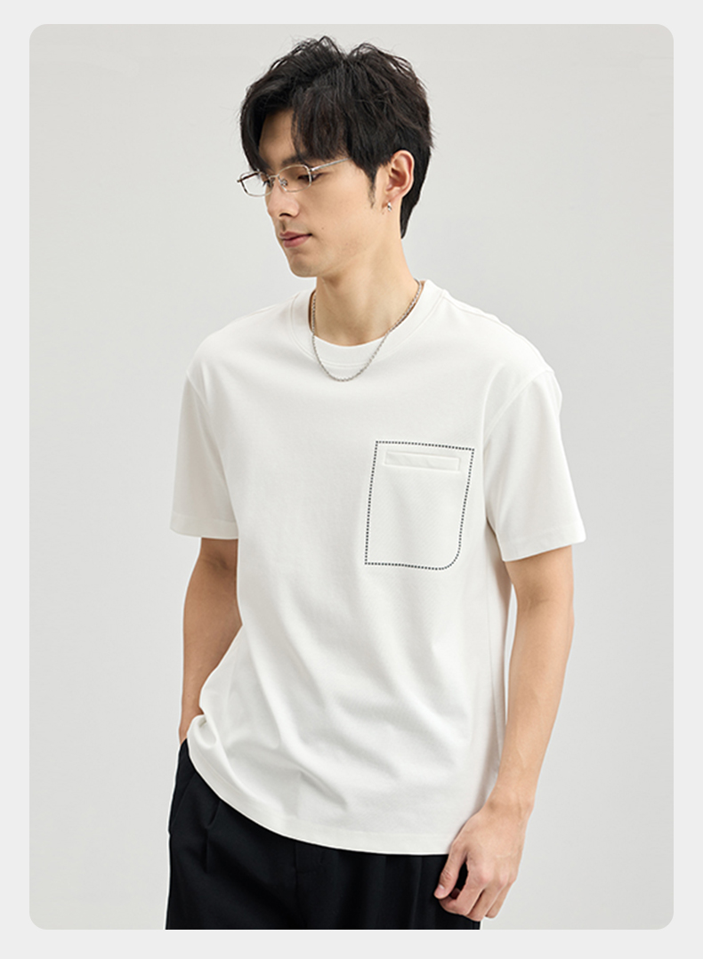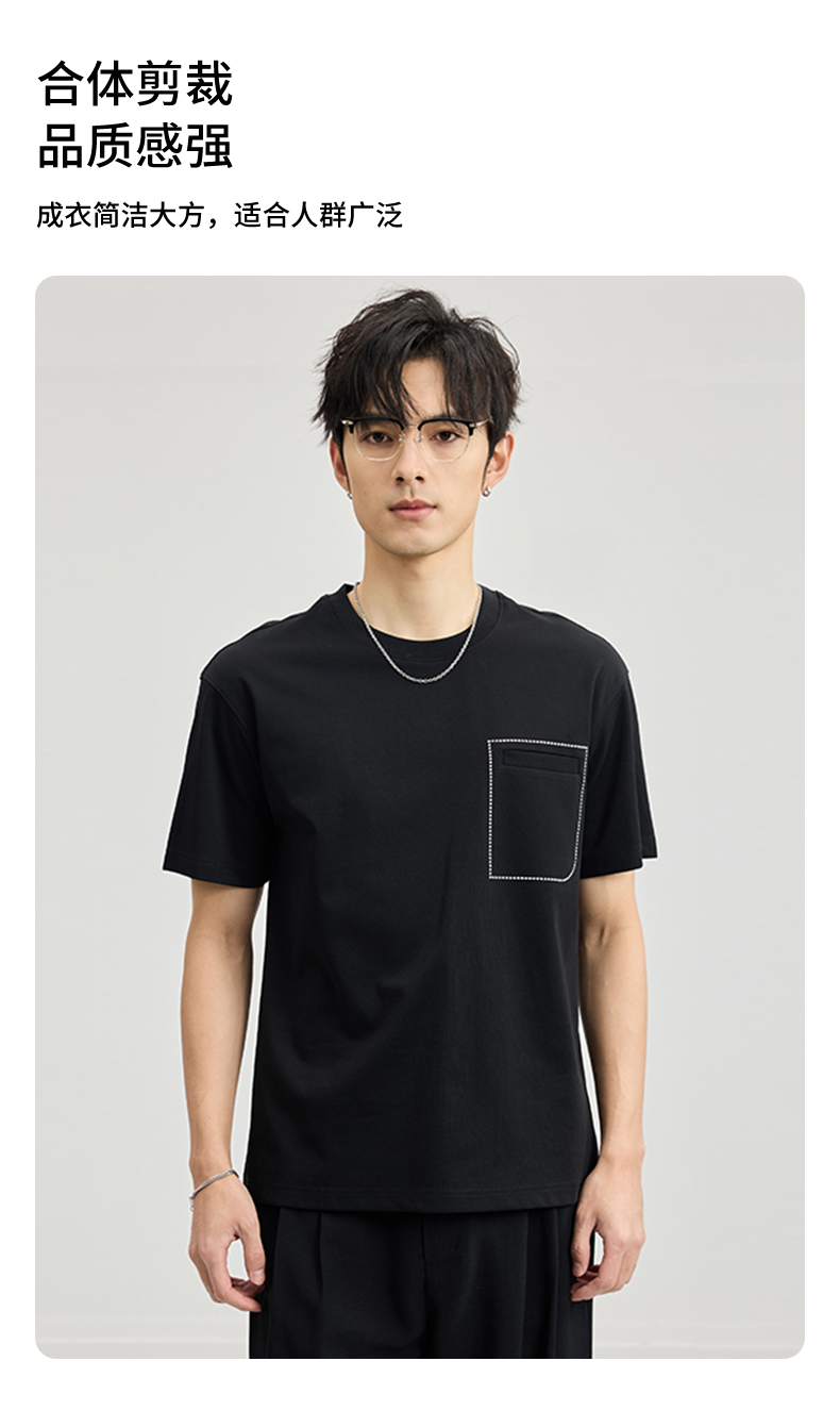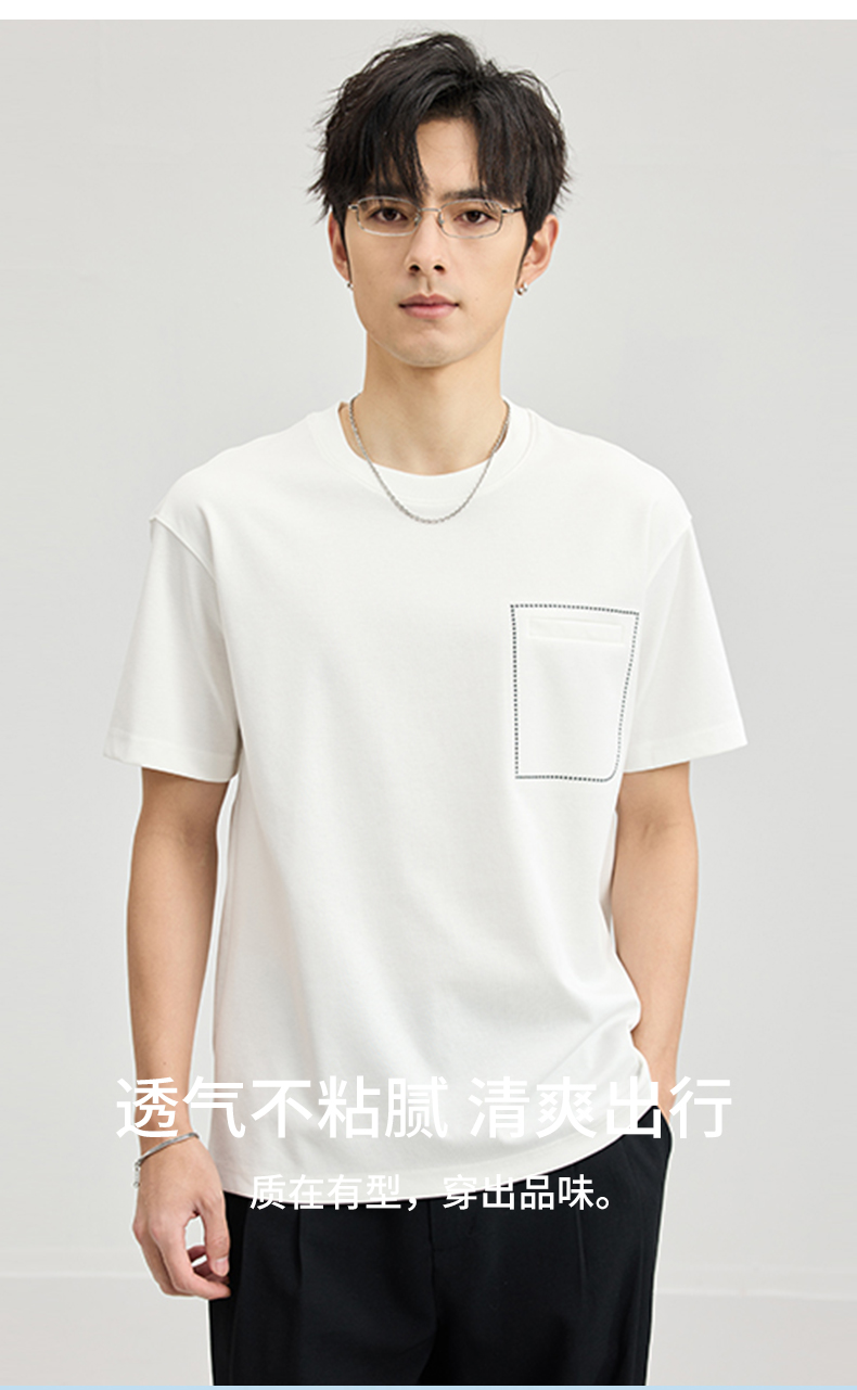 贝纳川醋酸莫代尔绣口袋短袖T恤ECF114005