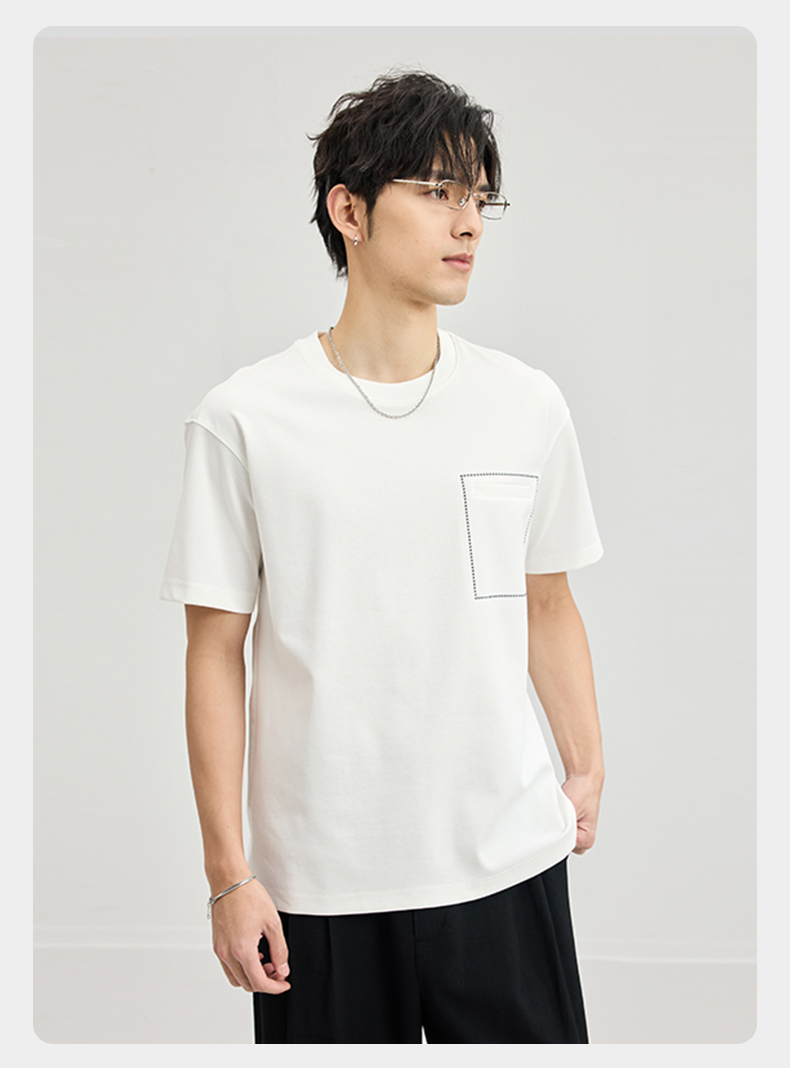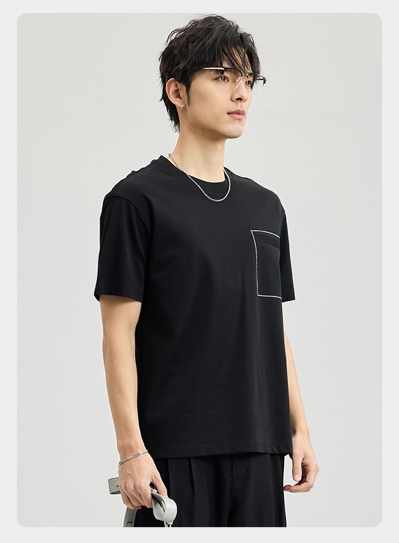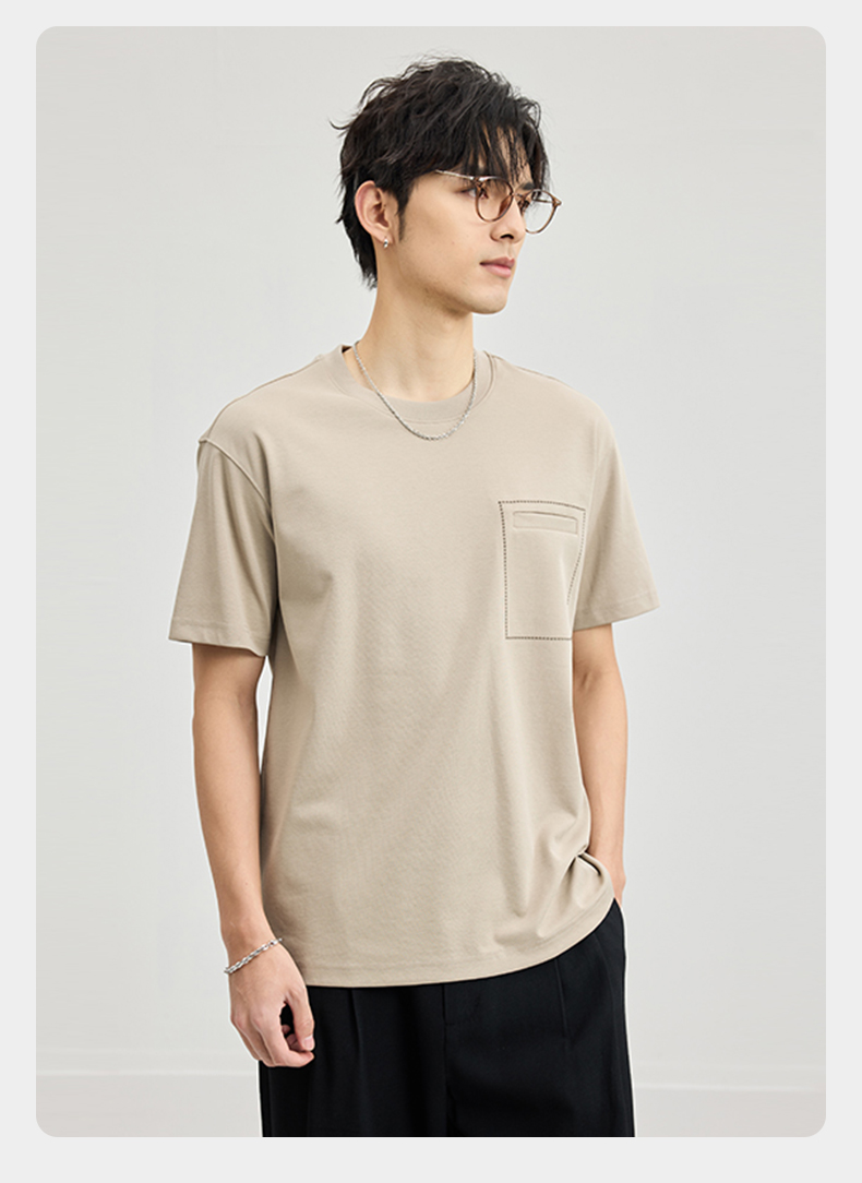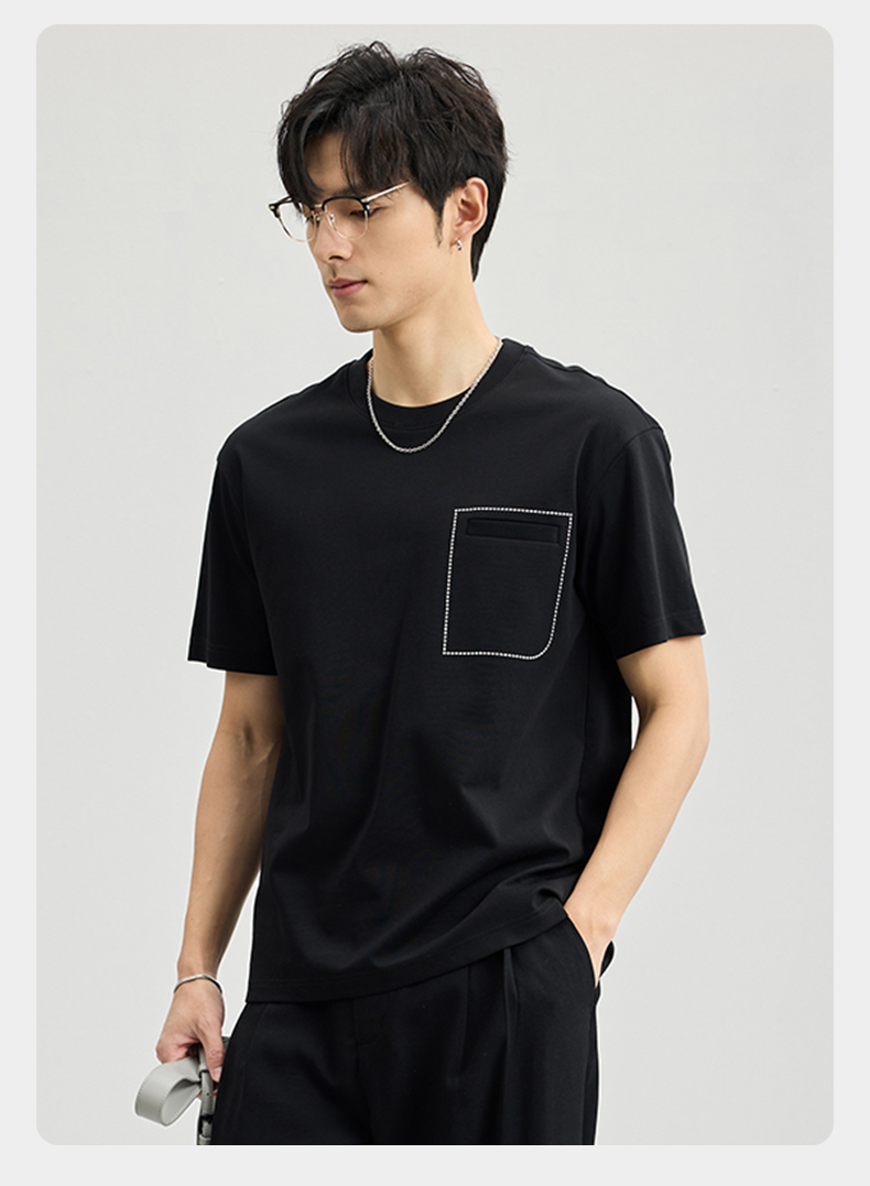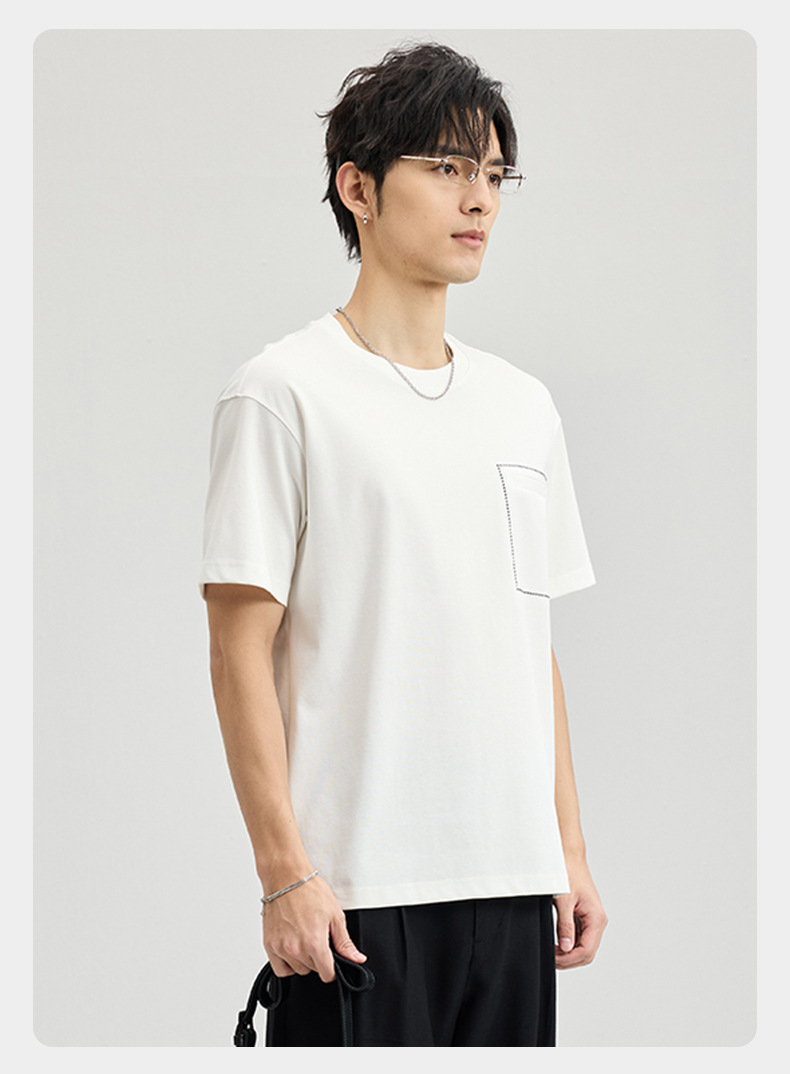 贝纳川醋酸莫代尔绣口袋短袖T恤ECF114005