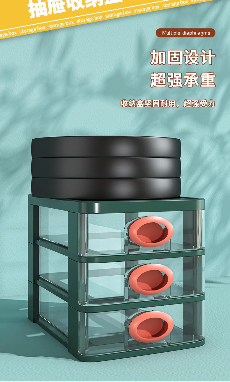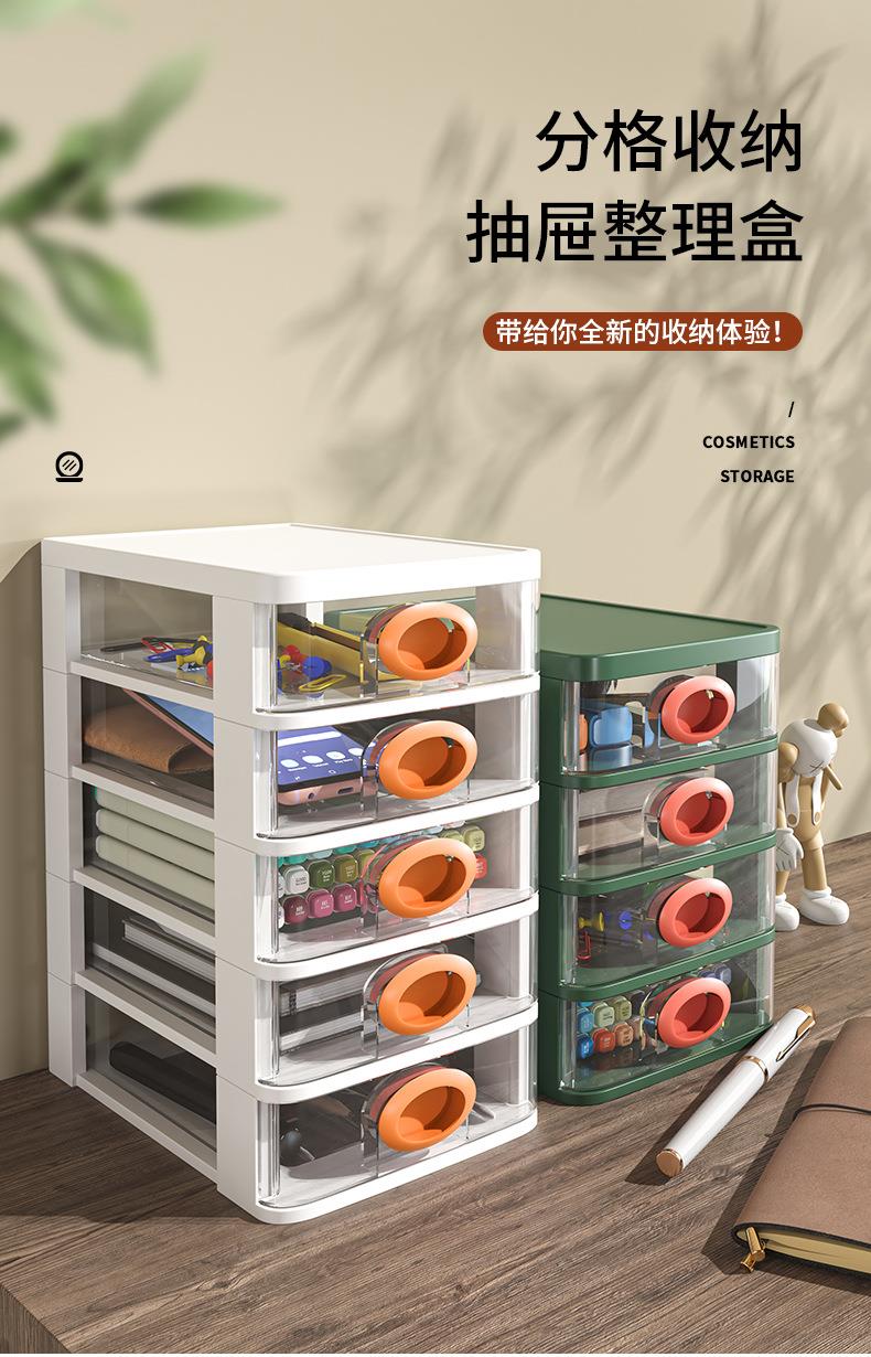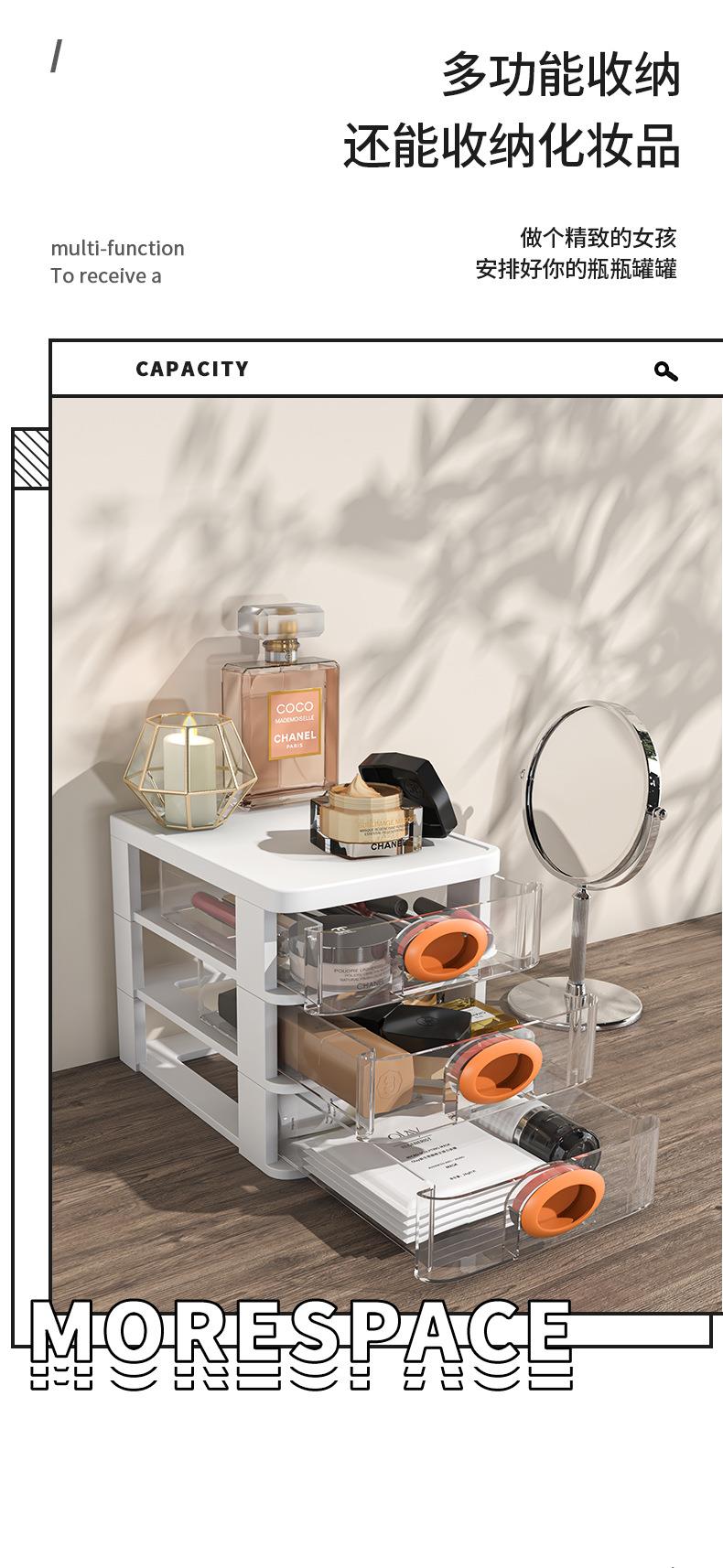 透明可叠加分格抽屉式收纳盒化妆品文具整理盒办公桌面置物架防尘