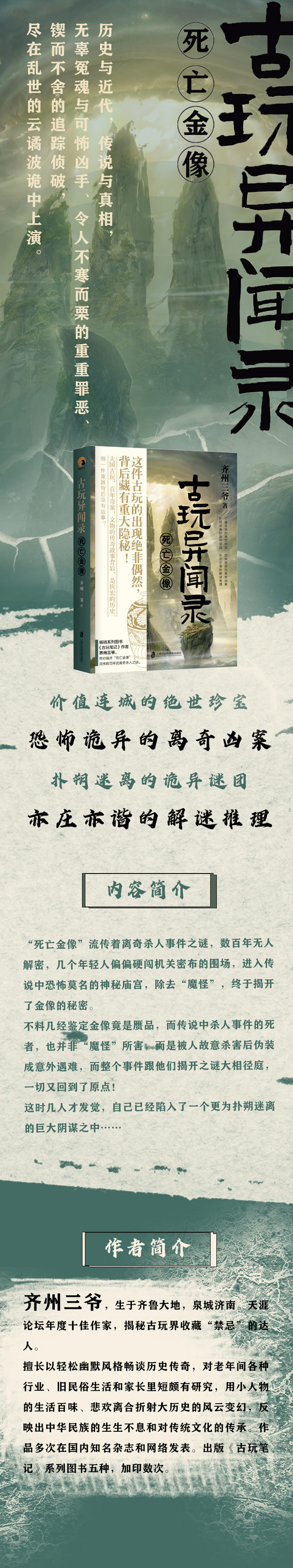 本书讲述的是清末民初几位年轻人寻找一尊金像的故事。他们机智勇敢,九死一生,经历了种种凶险、怪异的险境之后,终于看到了金像,寻出真正的杀人凶手,保护了无价之国宝。