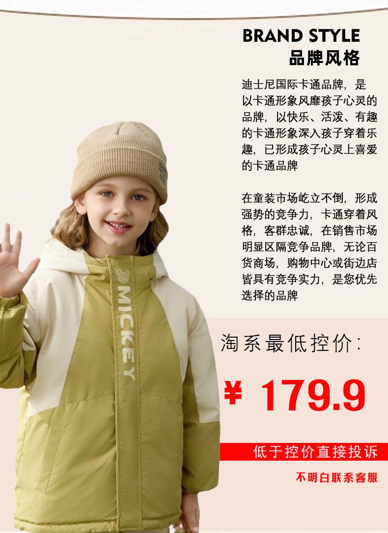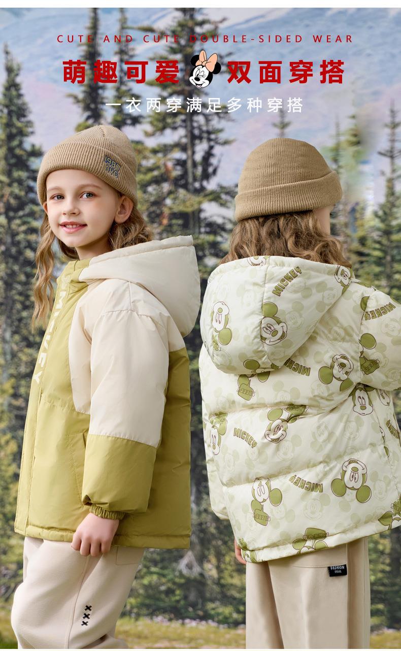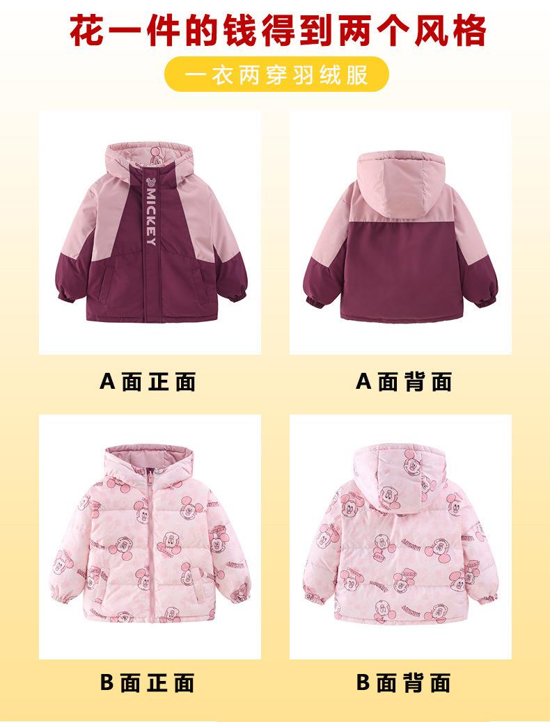 迪士尼儿童双面穿90白鸭绒羽绒服加厚连帽外套韩版新款中小童冬装
