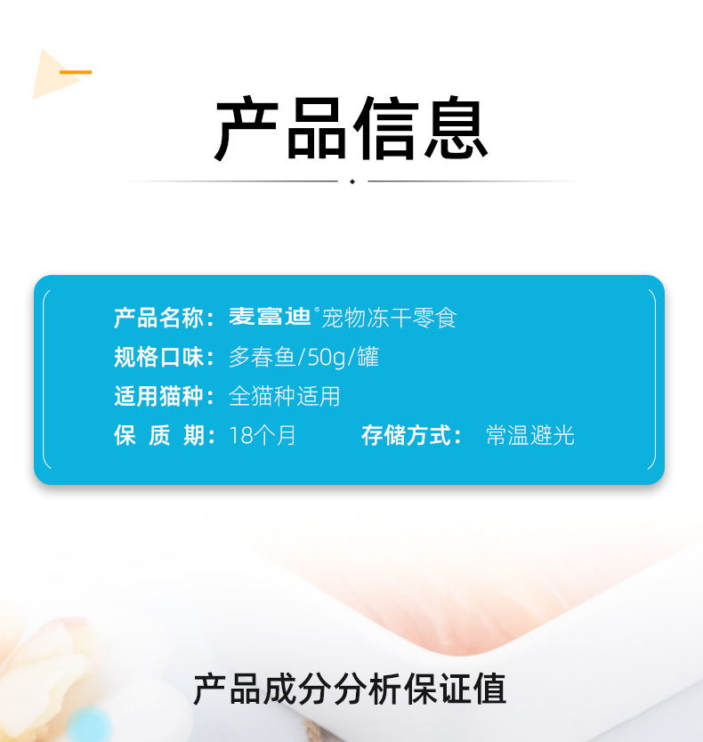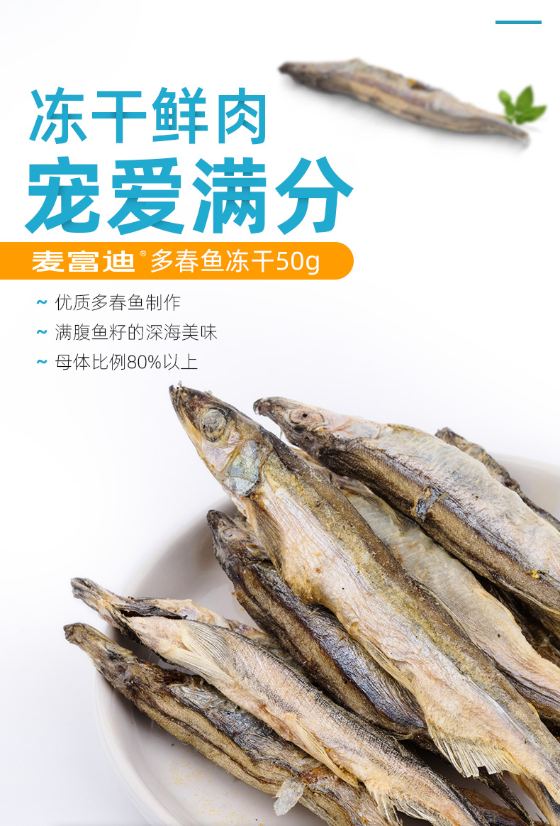 麦富迪冻干小鱼干猫咪零食多春鱼满籽猫咪营养增肥无盐猫粮成幼猫