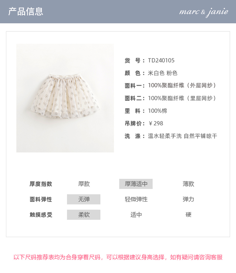 马克珍妮女童碎花网纱短裙半身裙儿童裙子2024年春装新款240105