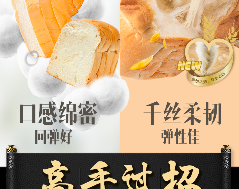 新良日式面包粉黑金版高筋面粉小麦吐司粉面包机用专烘焙原料1kg