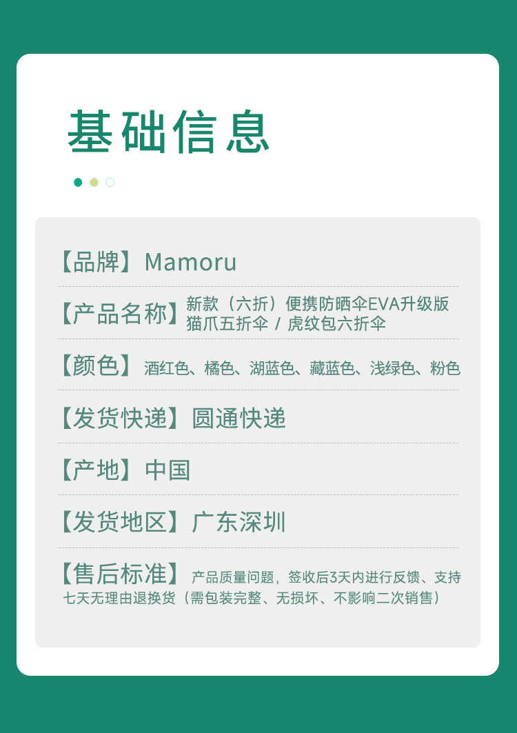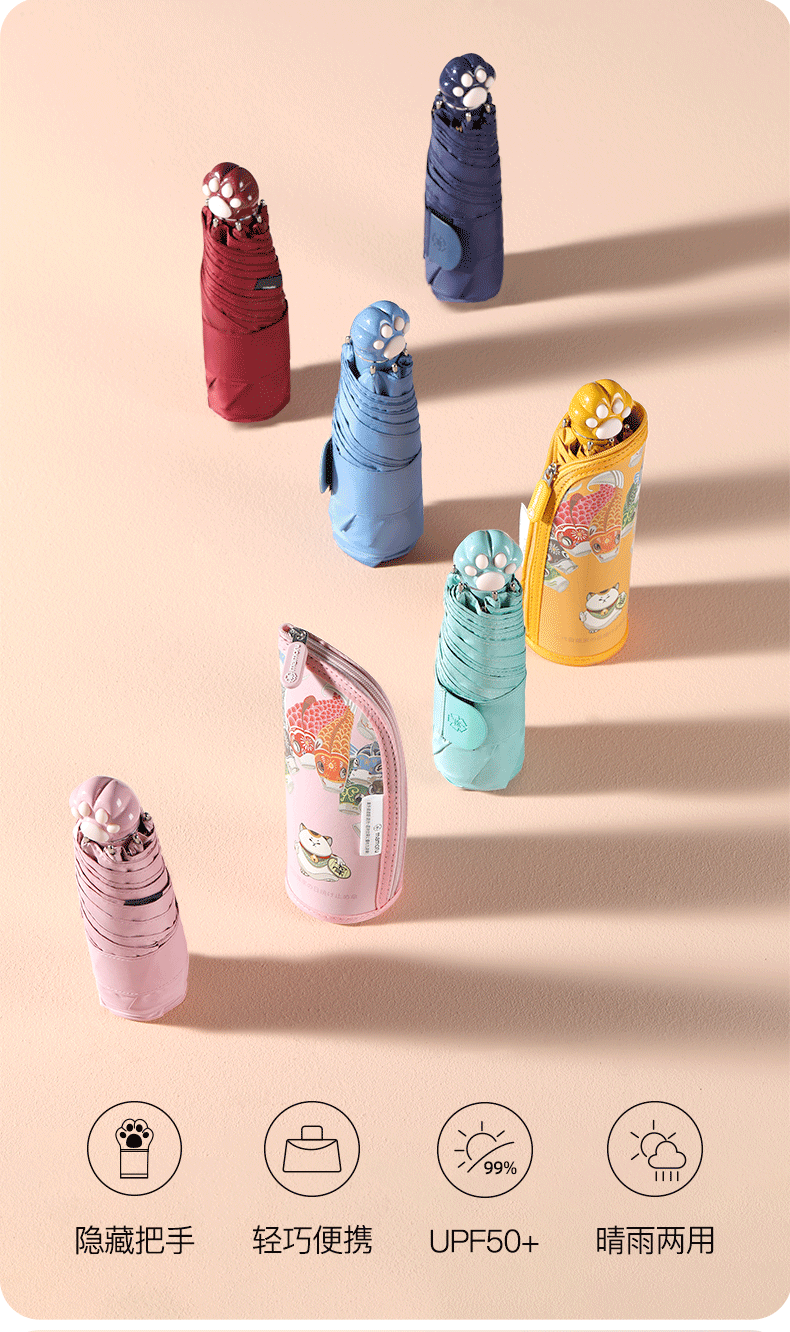 【mamoru防紫外线葵伞】经权威认证 骨架加固更结实可防风 可爱猫爪/虎纹包伞/经典六折伞 多规格可选AA