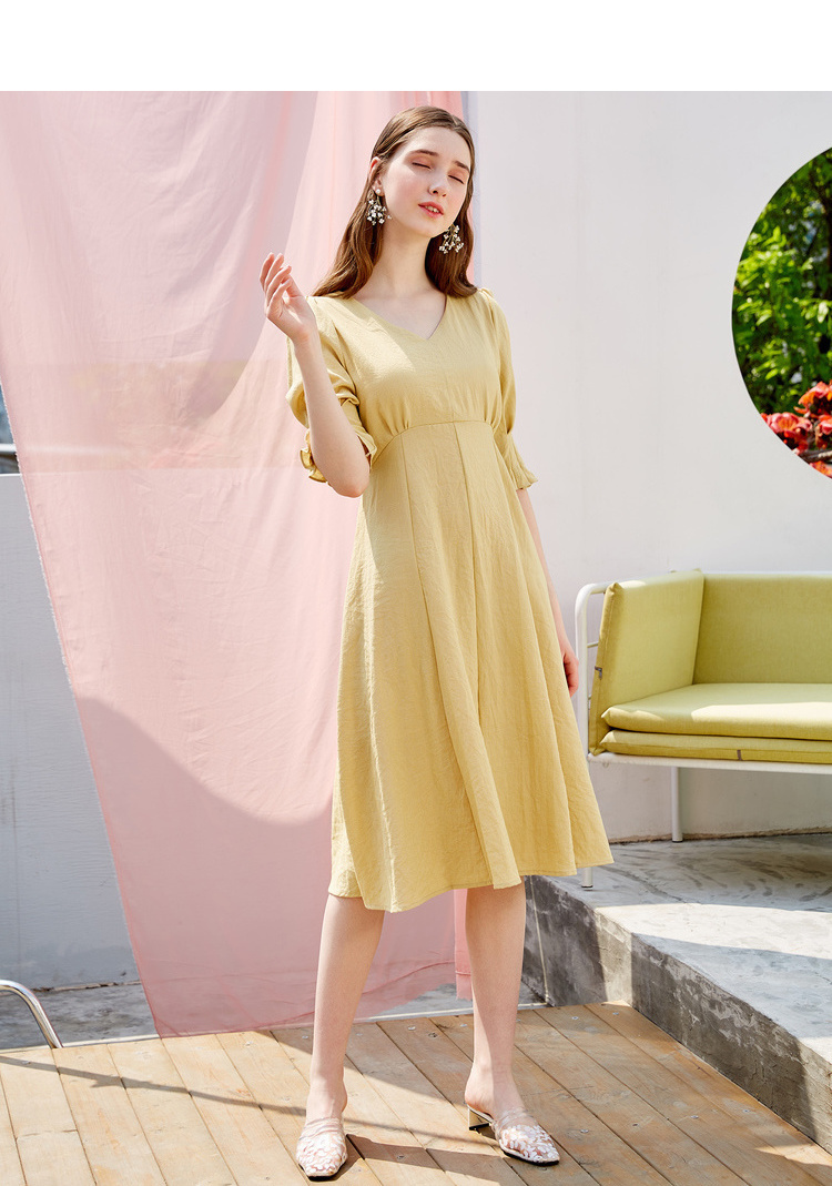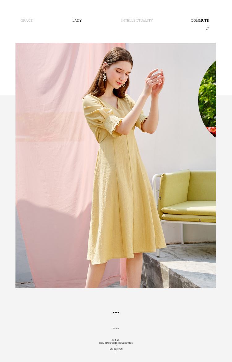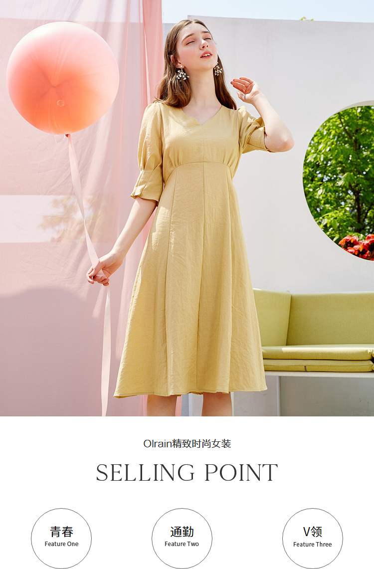 欧芮儿夏装2019新款女装V领连衣裙中长款气质智熏裙法式桔梗裙